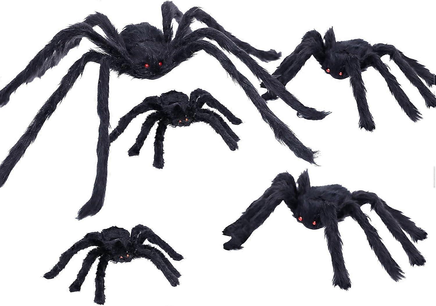 Halloween Giant Hairy Spider Set 5 Scary Realistic Spider Props in Different Sizes (35"x1, 20"x2, 12"x2)
