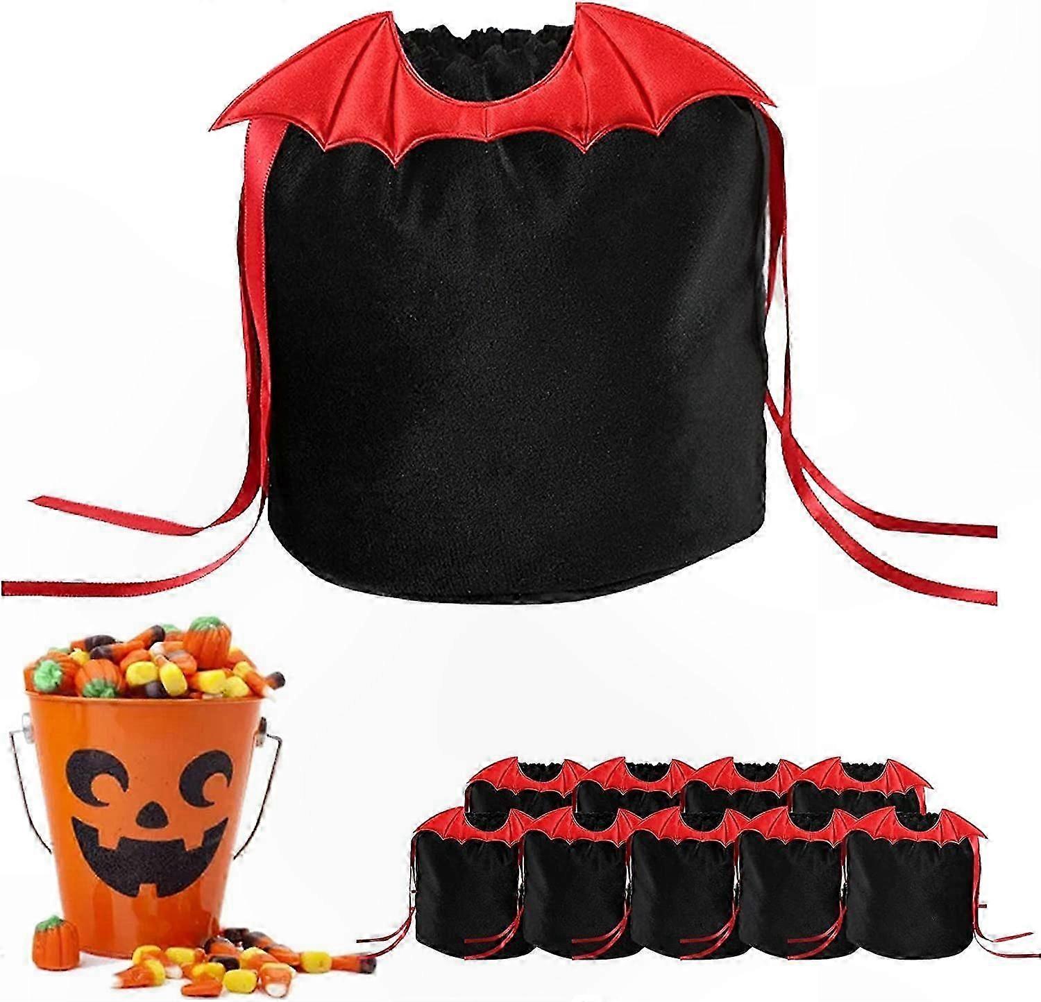 Halloween Bat Design Drawstring Pouches - 10 Pack Treat Bags for Party Favors and Gifts (5.12x5.91 Inches)