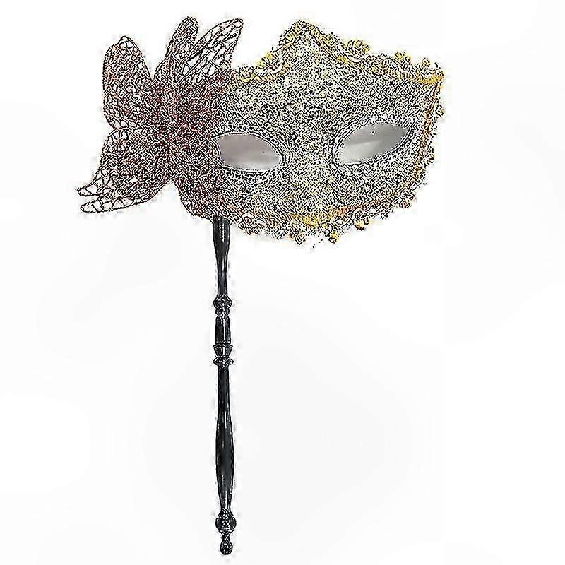 Halloween Masquerade Mask with Stick, Venetian Half Face Mask for Women, Evening Prom & Cosplay Props