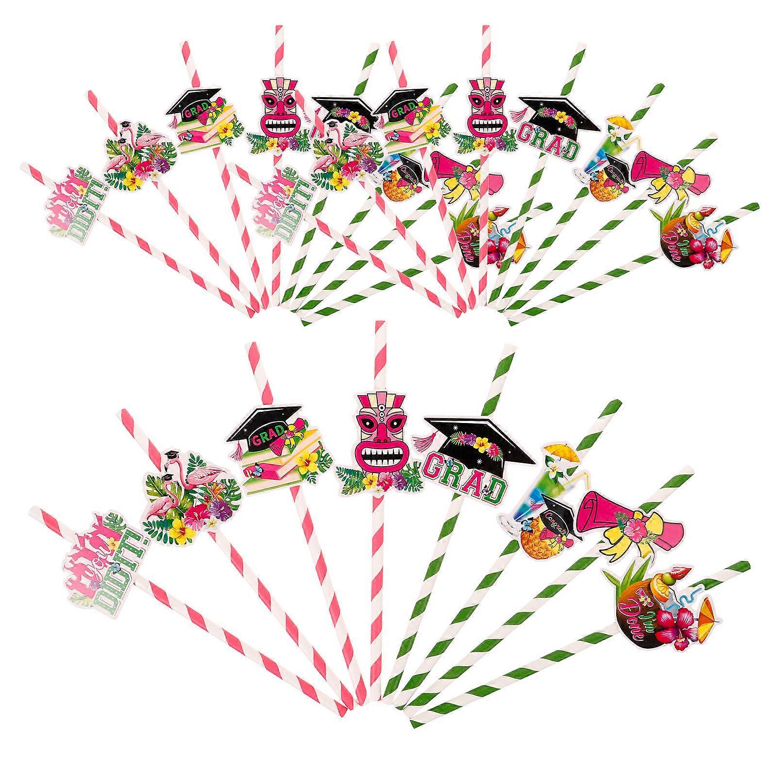 Hawaii Style Striped Straws Graduation Party Supplies Assorted Color Drinking 24Pcs