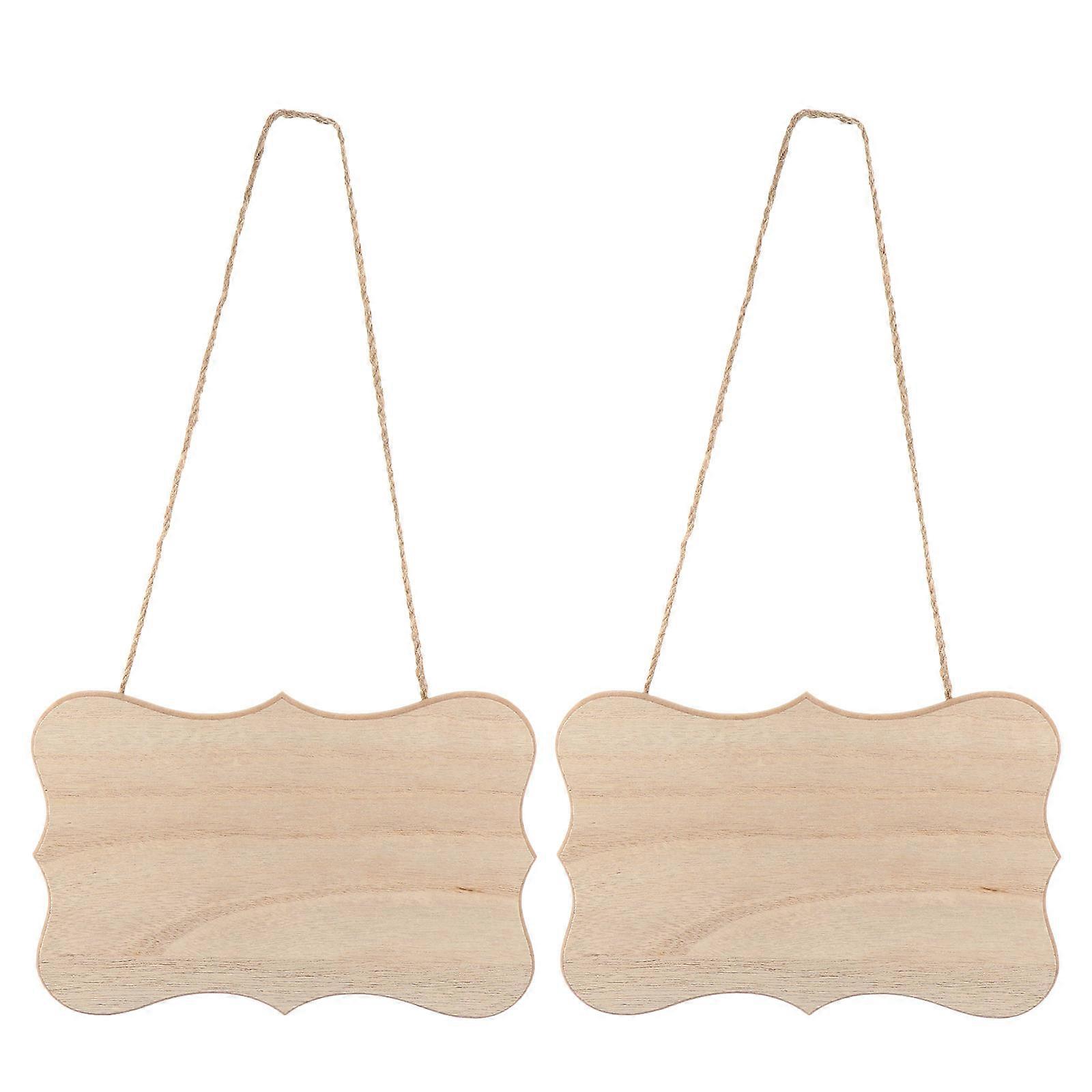 Hanging Wood Sign 2Pcs Party Props Natural Wood Material Beige Simple Design Home Use Decoration