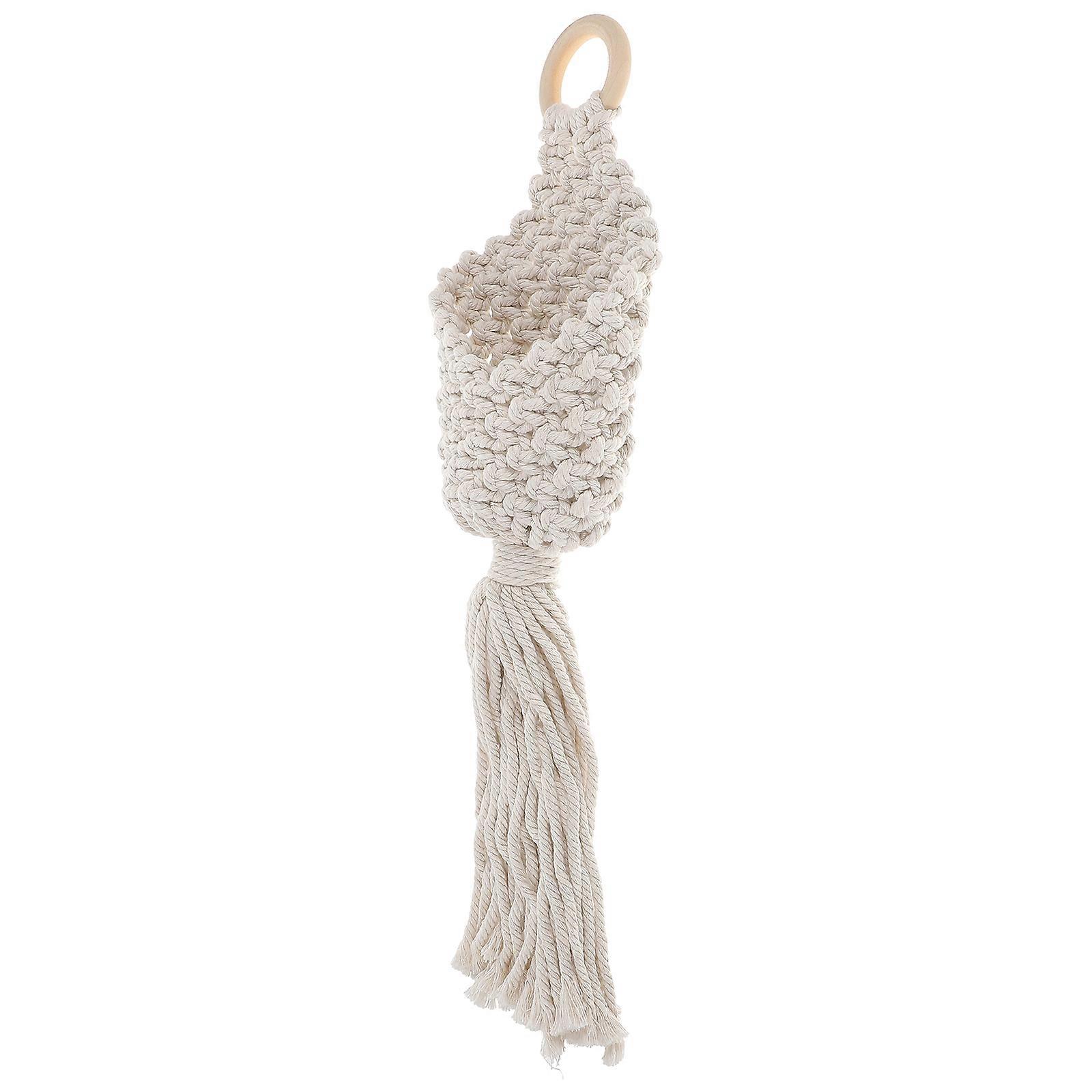 Hanging Woven Basket Water-Drop Shaped Fruit Storage Bohemian Style Beige 45X5.5CM 1Pcs