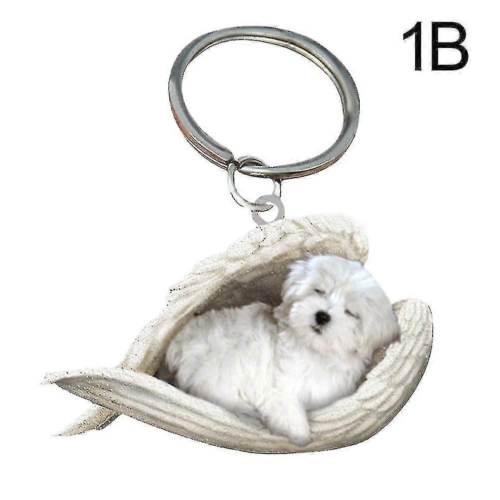 Hanging Ornament Keychain Cute Sleeping Dog Wing Pendant Dog Maltese