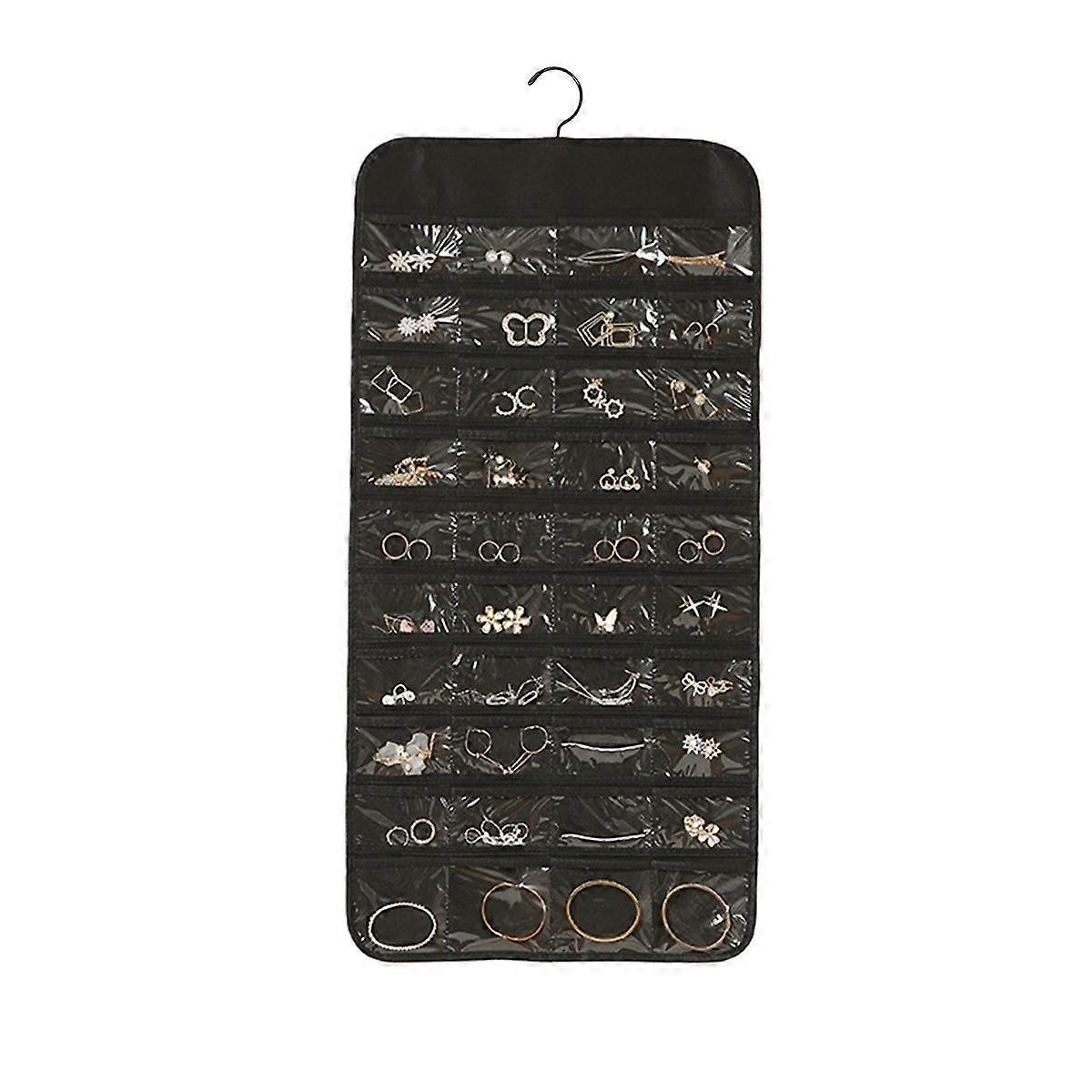 Hanging Jewelry Organizer Storage Roll with Hanger Metal Hooks Double-Sided Jewelry Holder for Earrings, Necklaces, Rings on Closet, Wall, Door