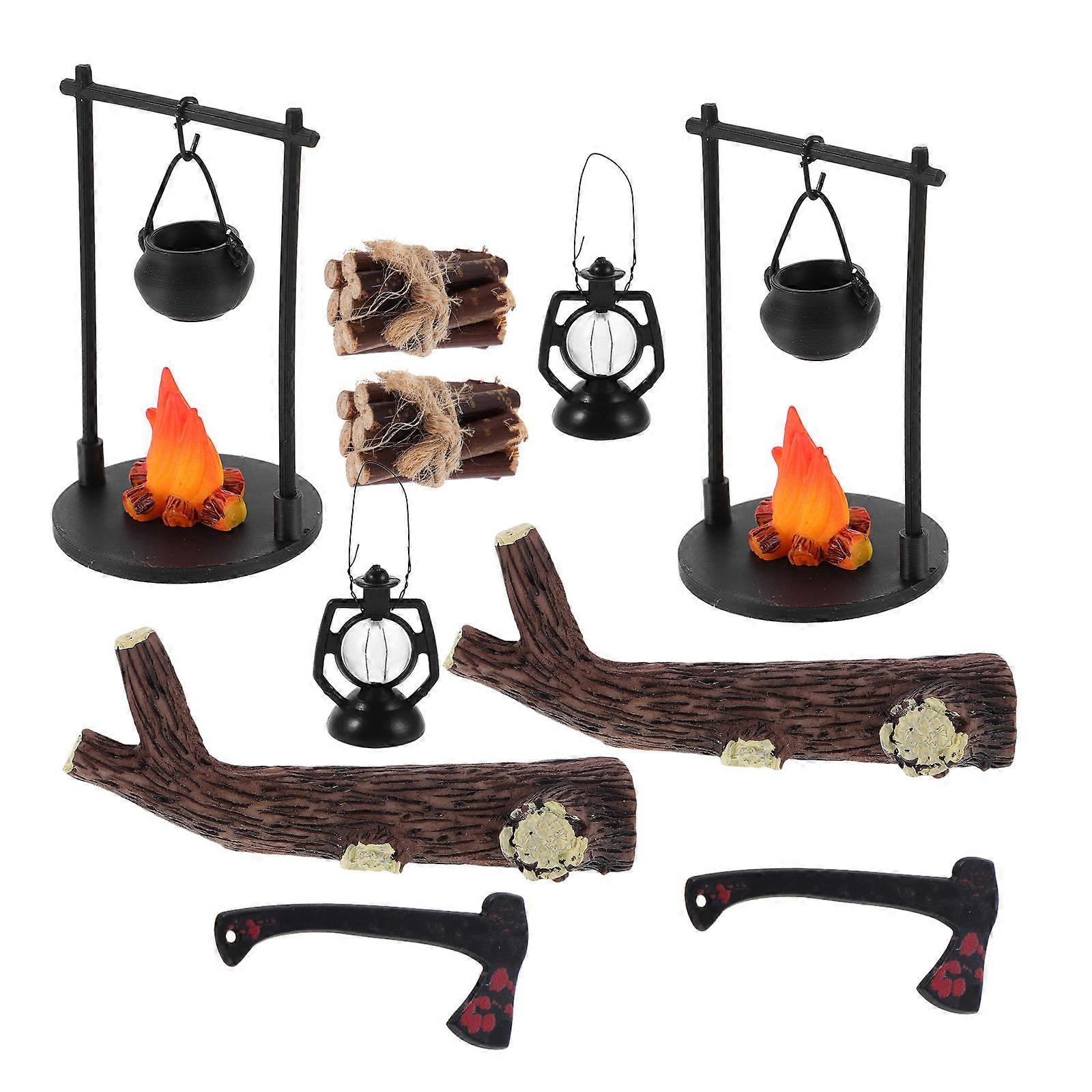 Campfire Dollhouse Scenery Props with Hanging Stove and Woodpile – Rustic Outdoor Scene Miniatures for Pretend Play, Kitchen and Farmhouse Decor