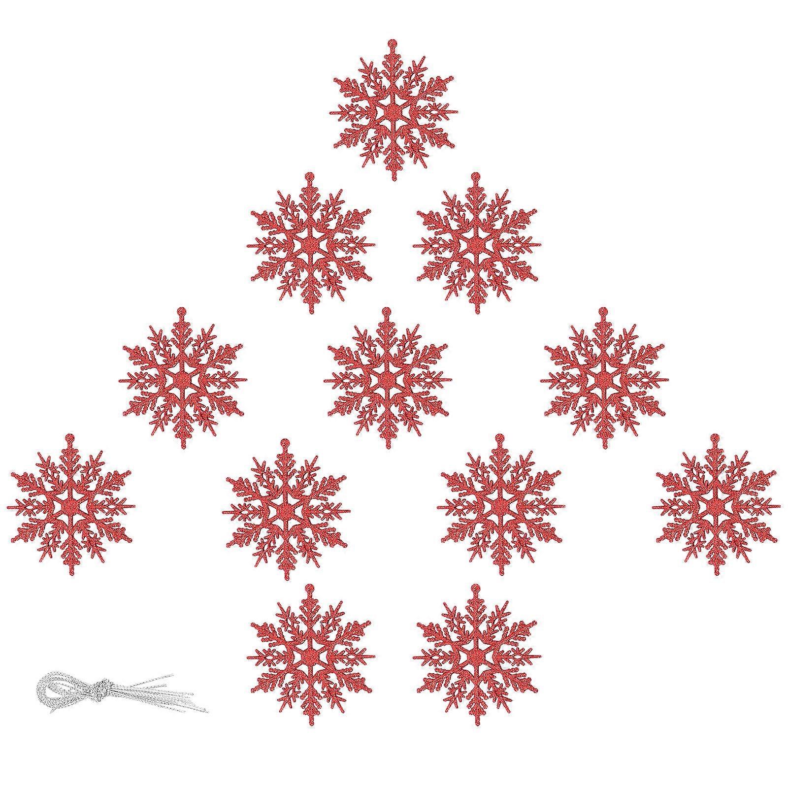 Hanging Snowflake Decorations Plastic Christmas Ornaments Red 10cm Classic Design Kids 12Pcs