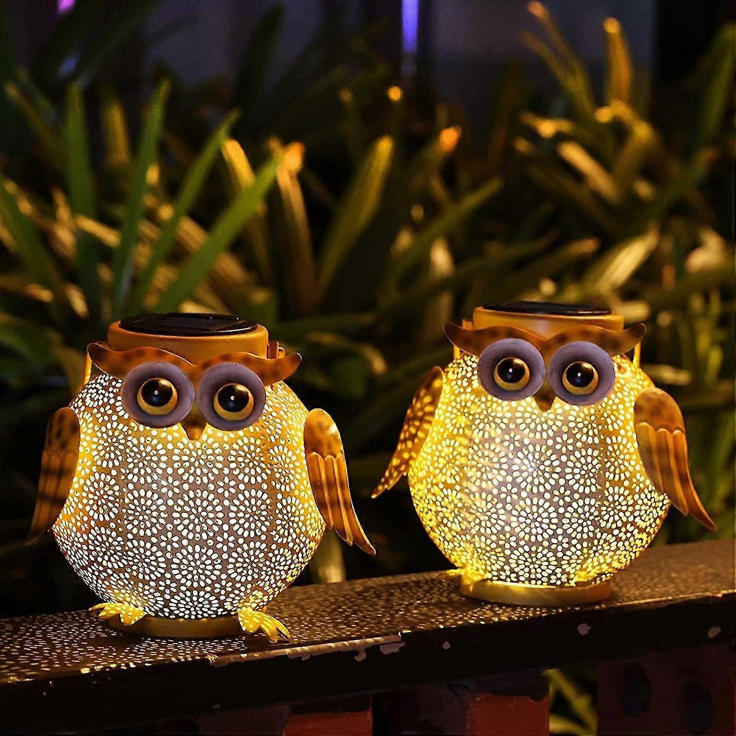 Lovely Handmade Design -- Lanterns are made of high-quality metal with cute animal shapes. Decorative solar lights made your garden alive day & night, bringing you unexpected compliments and joy.(The eyes of owl can be adjusted up and down with adjustable metal.) Auto ON/OFF -- The lanterns are solar-powered, place lights under direct sunlight for fully charging during the day.The lantern decoration will automatically turn on at dusk and turn off at dawn. It's the best gift for family and friends Energy Saving -- Each garden Light includes 1 AA 600mAh rechargeable battery, solar powered outdoor lanterns will work up to 8 hours after full charged. No wire need, safety and environmental. (Make sure you turn the ON button before charging). All-Weather Durable -- Outdoor waterpoof lanterns are made of eco-friendly paint to prevent rust under rainy day. Durable construction and IP65 water resistance ensure long-lasting performance in most weather conditions with durable handle for indoor and outdoor use. Mutil Functional -- Solar lanterns have a wide use, can be used as patio lights, tree lights, front & back porch decor and can also be placed on flat surfaces and tables. Material: wrought iron, Product size: 14 * 15.5 * 23.5cm, Waterproof grade: IP65