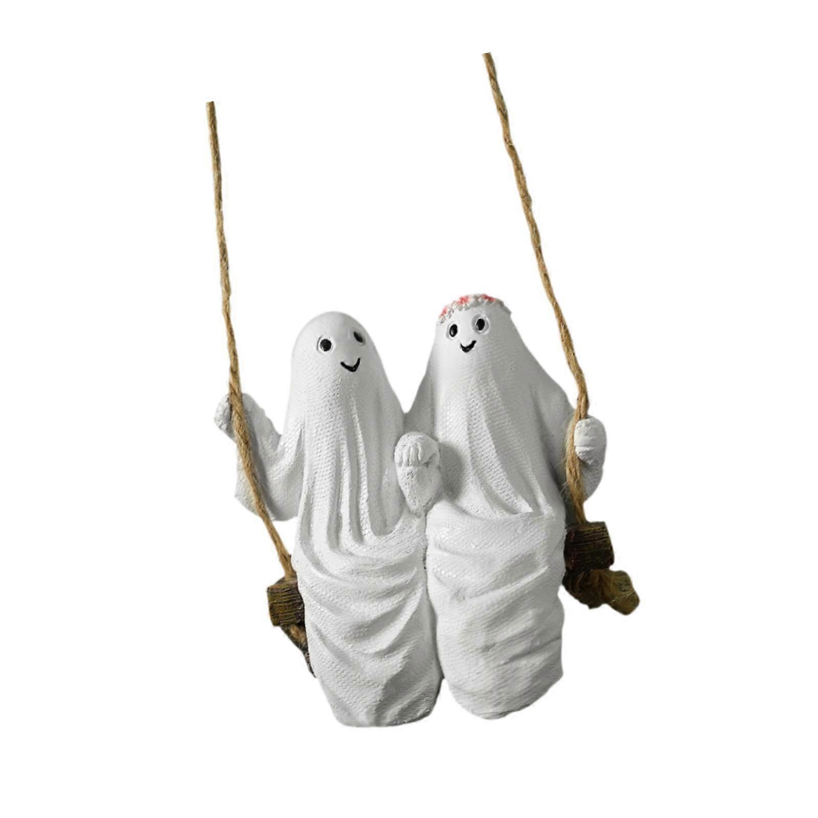 Hanging Decoration Cute Collectible Halloween Couple Ghost with Swing Statue White