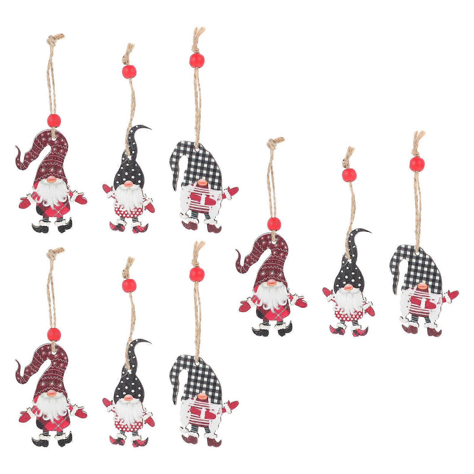 Hanging Decor Christmas Dwarf Pendants School Decorations 14.5X3.5CM Wood Material 9Pcs