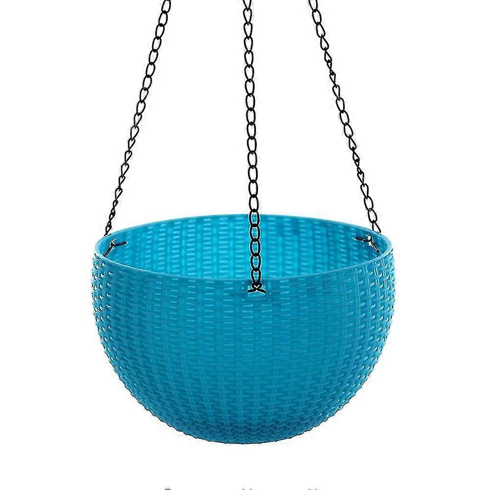 Hanging Basket Rattan Plastic Flower Pot Garden Hanging Planter For Indoor Outdoor Plant-S 2pcs-Blue