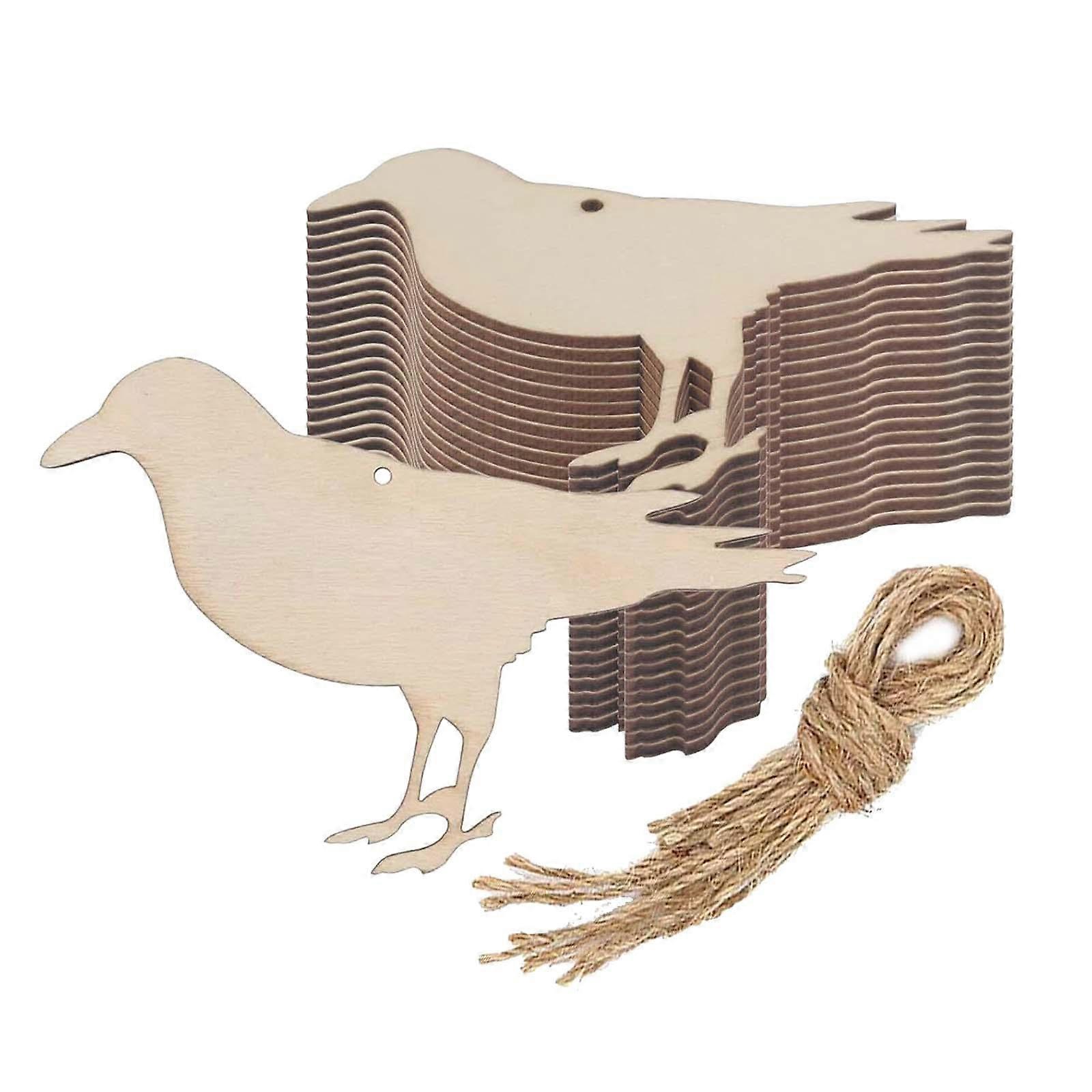 Hanging Bird Ornaments Halloween Crow Shaped Holidays Unfinished Wood Slices