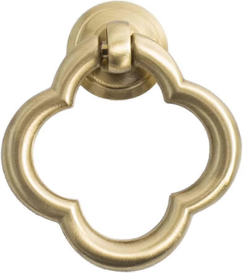 Hanging brass pull closet door pull vintage dresser drawer cabinet ring pull single hole clover door pull, hanging brass pull (gold) (1pcs)