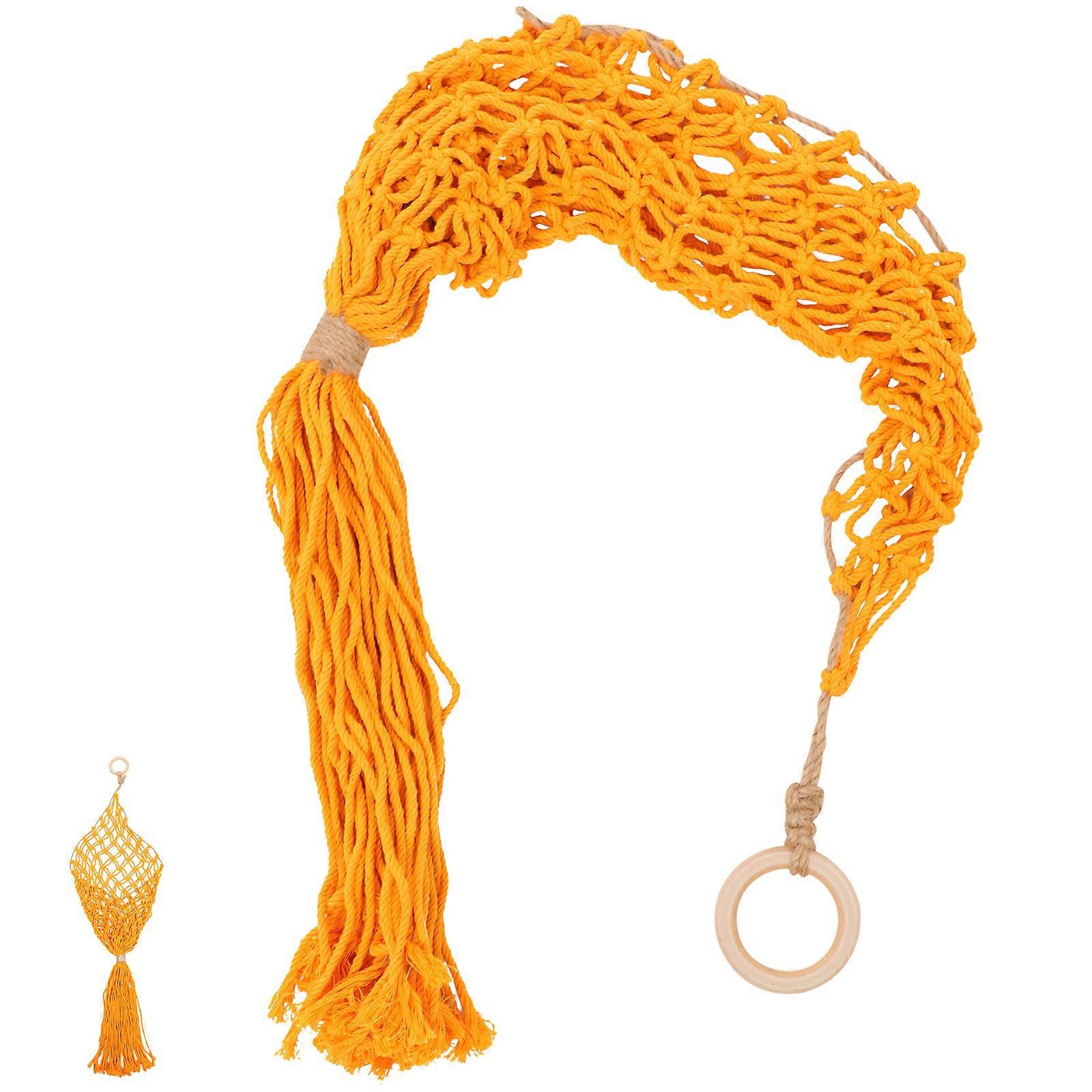 Hanging Fruit Basket Macrame Fruit Hanging Bag Home Decoration Yellow 90X25X1CM Keeps Produce Fresh 1Set