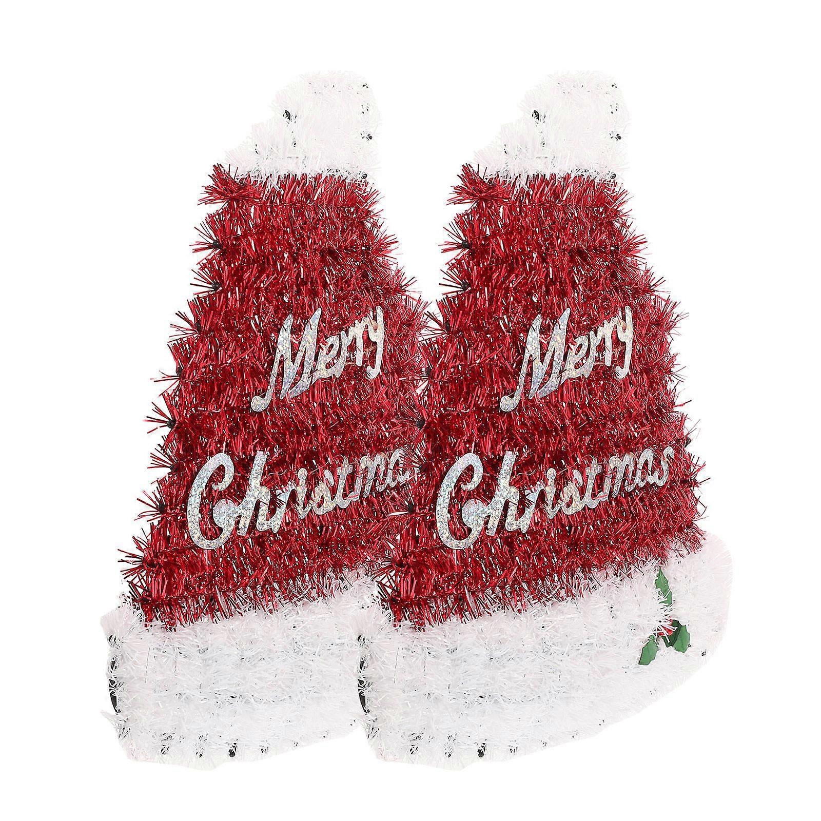 Hanging Pendant Fringed Santa Hat Shopwindow Decoration Red Plastic Photo Prop 2Pcs