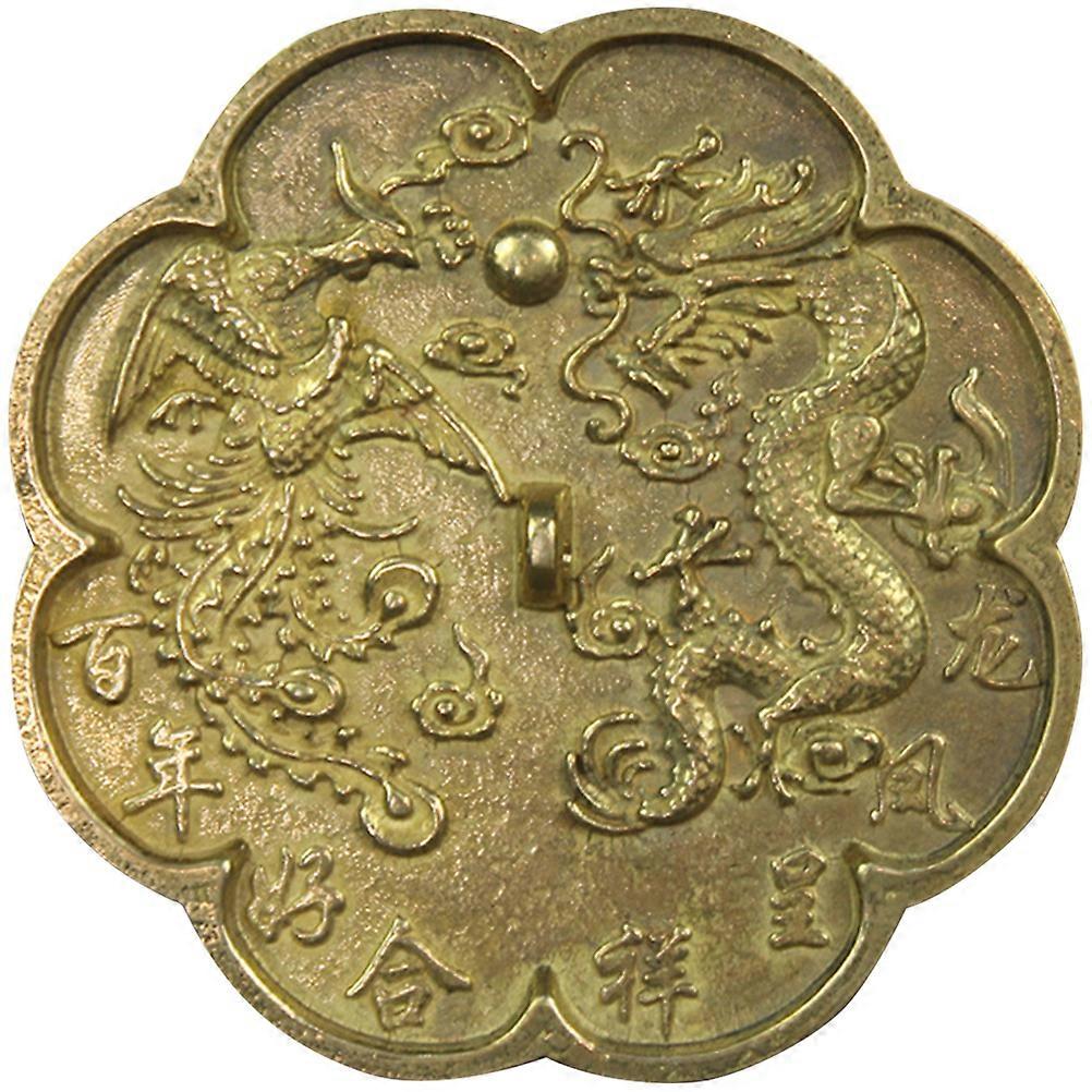 Hanging Mirror Chinese Brass Mirror Evil Avoidance Doorway Hanging Traditional Chinese Design Golden 8.50X8.50X2.00CM 1Pcs