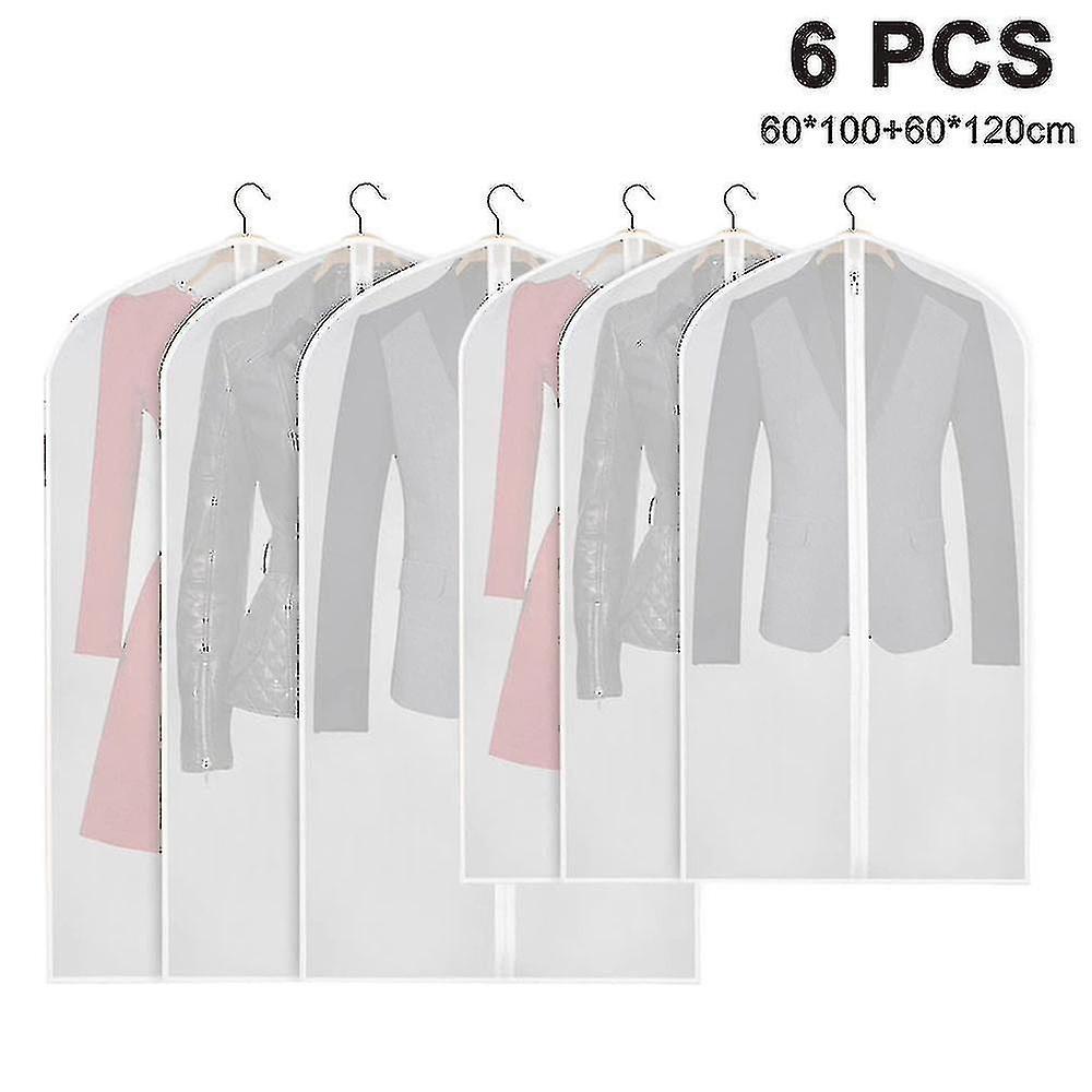 Hanging Moth Proof Cover Lightweight Clear White Peva Breathable Bags (pack Of 6) With Study Full Zipper For Suit Clothes Storage Closet High Quality
