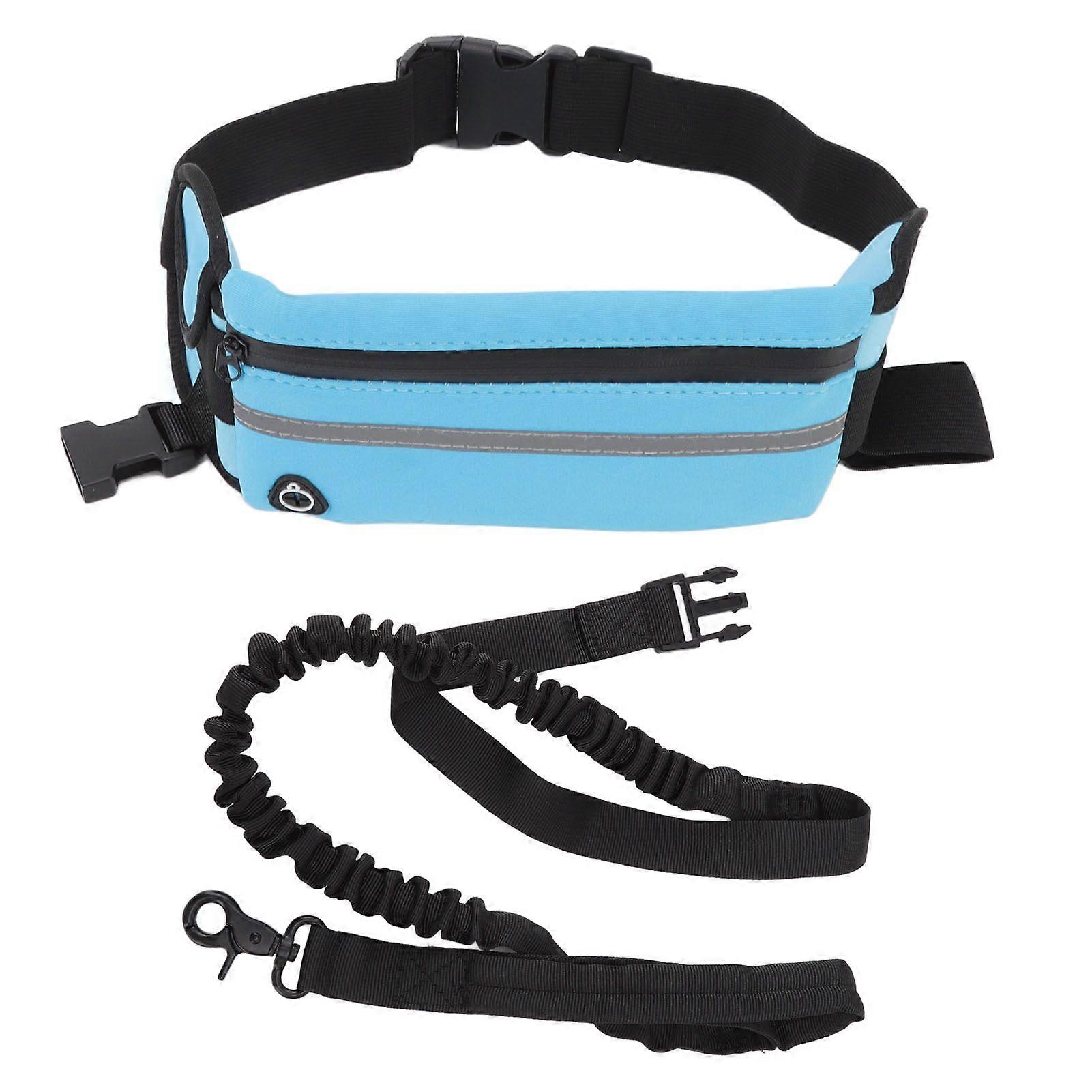 Hands Free Dog Leash Fanny Pack Waist Dog Leash Nylon Bungee Leash Pack for Night Running Walking Light Blue