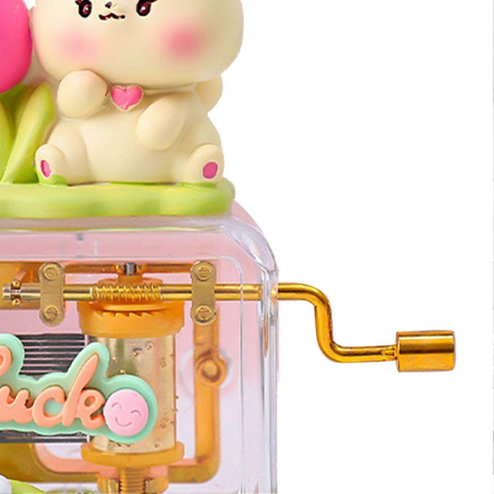 Hand Crank Music Box Yellow Cat Resin Metal Cute Cartoon Gift