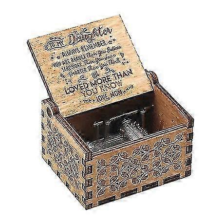 Feature: Vintage design - This music box is woody. The exquisite surface carved by hand in imitation of ancient times bring you into a magic world. Spin the crank handle - Rotate the handle, you will hear a clear music without battery power. Classical music - The theme of the music box is "U are my sunshine". Music box inside engraved the words to show a mother's love to their children. Easy to carry - light design can place it on the for palm of your hand, small bag, bedroom desk etc.Work as a perfect ornament. Perfect gift - Made as good quality, which is very perfect as a gift to children ,kids on birthday,party Specification: Engraved :Wooden Music Box Material: pinewood Process:Pure hand Finish: Natural oak stain Theme: for the music box The package includes: 1x music boxes