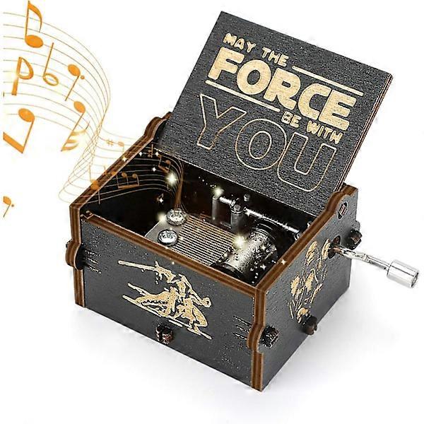 Wooden Music Box with Hand Crank, Star Wars Classic Music Box Antique Carved Music Box Home Decoration Craft Gift (Black)