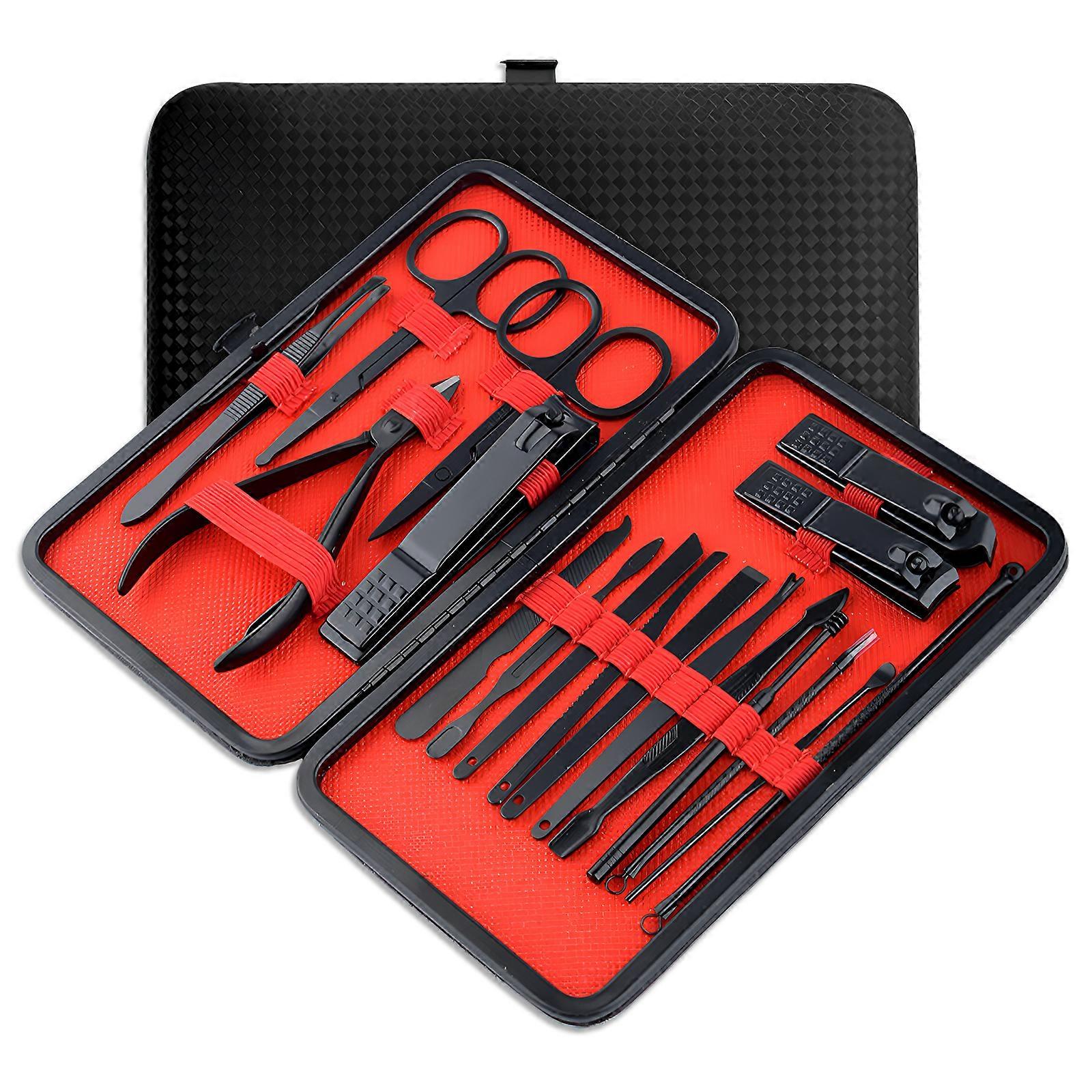 Hand Care Tools, Pedicure Kit with 18Pcs Stainless Steel Anti-Slip Design for Professional Use, Complete Grooming Set in a Portable Travel Case for
