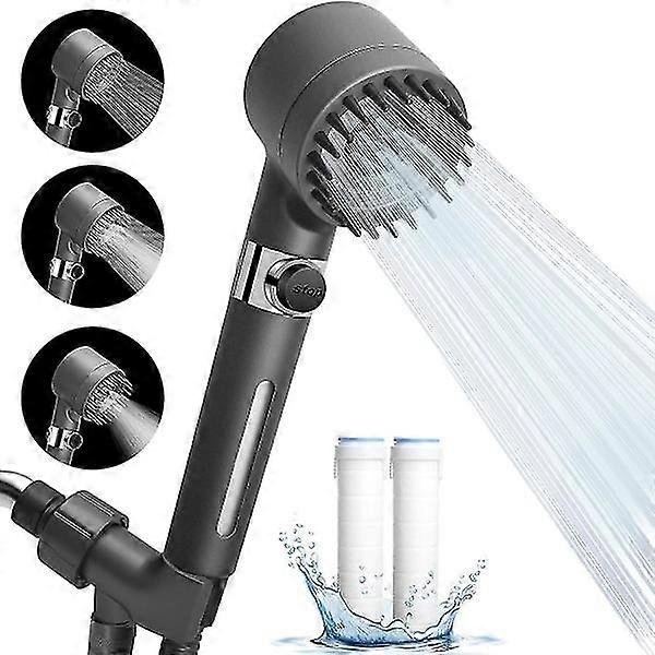 [SAVE WATER WITH GOOD PRESSURE]: The shower nozzle saves more water than ordinary showers. It is designed with micro technology and has a unique internal structure that increases pressure. It is equipped with powerful 150 outlet holes, making the outlet holes smaller and tighter while saving water by up to 30%. The powerful water pressure is gentle enough to your tired body in just a few minutes. [4 CONVENIENT FUNCTIONS WITH DIFFERENT SPRAY MODES]: Detachable shower head and handheld design with the most convenient 4 water outlet modes, including full body rain mode, focused power mode, relaxing massage mode and pause mode for water saving. This can meet all usage requirements without having to set unnecessary modes that complicate the usage process. [SUPERIOR MATERIALS]: This advanced handheld shower head is made of eco-friendly materials in chrome-plated durable ABS, and the outside is coated with multi-layer back paint to make it resistant to corrosion, rust and wear. This high-temperature shower head is more durable than ordinary shower heads. [FILTERING DESIGN]: The shower head contains 3 high-quality PP filters (a pre-installed shower head) to ensure that the water you use is clean and safe. The filtered shower head can effectively reduce residual impurities, heavy metals and chlorine in the water, making your skin and hair softer and healthier. A special safety for your skin. [MASSAGE FUNCTION]: With 22 massage ribs, it provides a SPA level of pleasure and makes the bath even more relaxing. [HAND HAND SHOWER NOZZLE SET]: The shower head set includes necessary accessories such as 1* multi-functional high pressure handheld shower head, 2* filters (one is spare), Install your shower head in seconds without asking for help! Let your family enjoy massage and SPA. [DETACHABLE SHOWER NOZZLE]: You can use the shower nozzle to shampoo your hair, take a shower, bathe your kids, wash your dog, and even clean the bathtub and shower wall. Cleaning function: The powerful high-pressure sprayer is very suitable for cleaning the bathroom after the shower, rinsing the floor, the bathtub, the bidet and the toilet, etc., which gives you a new shower experience and keeps the bathroom clean and neat. 4 PRACTICAL FUNCTIONS WITH DIFFERENT SPRAY MODESSAVE WATER UP TO 30% WITH GOOD PRESSUREFILTER DESIGN EXTRA FILTER INCLUDED