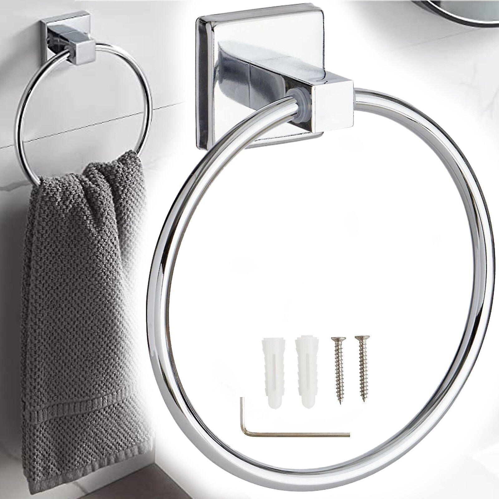Hand Towel Ring Chrome Round Holder Rail Kitchen Bathroom Rack Wall Mounted