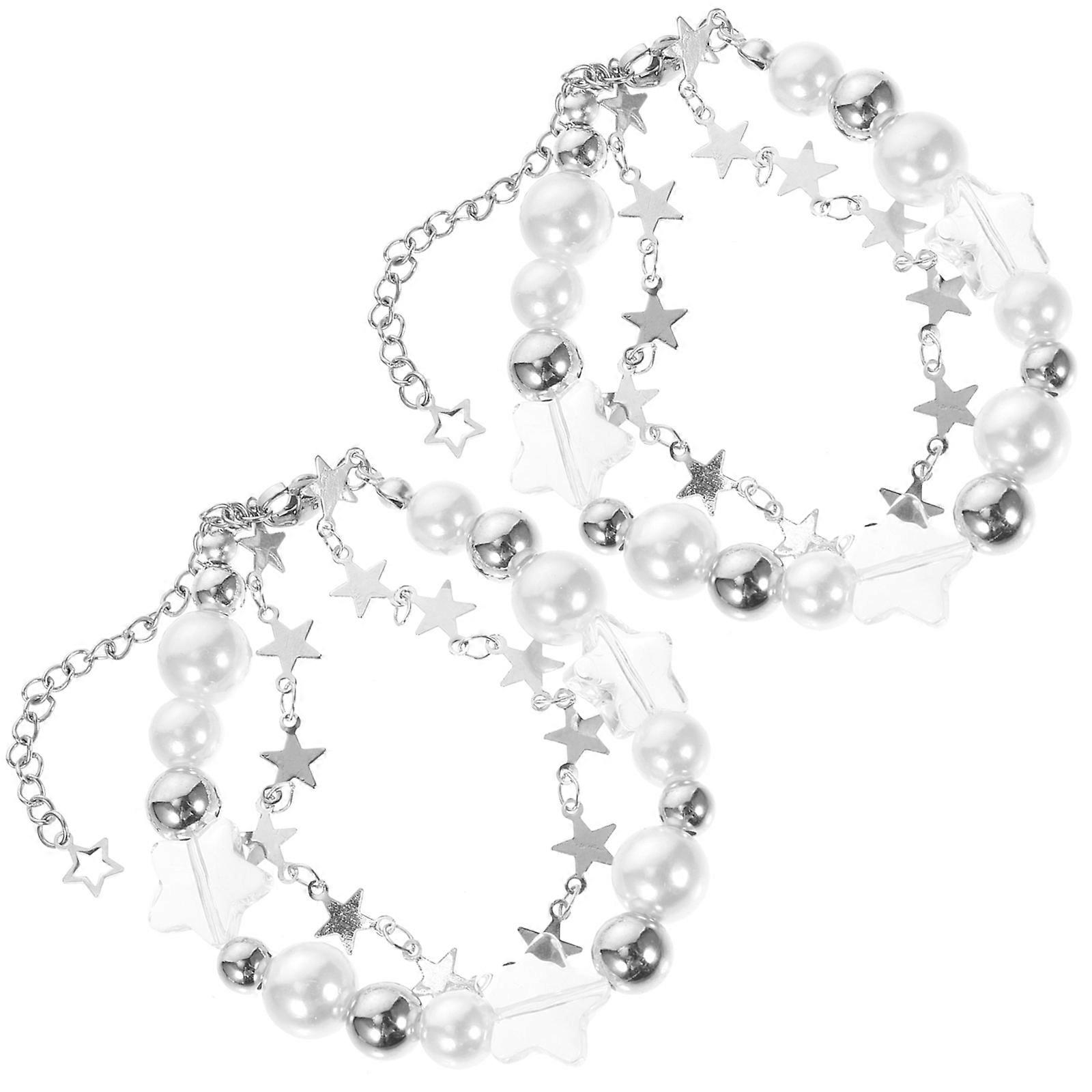 Hand Chain Bracelet Women Star Shaped Beaded Jewelry Silver 8x5x1cm Adjustable 2Set