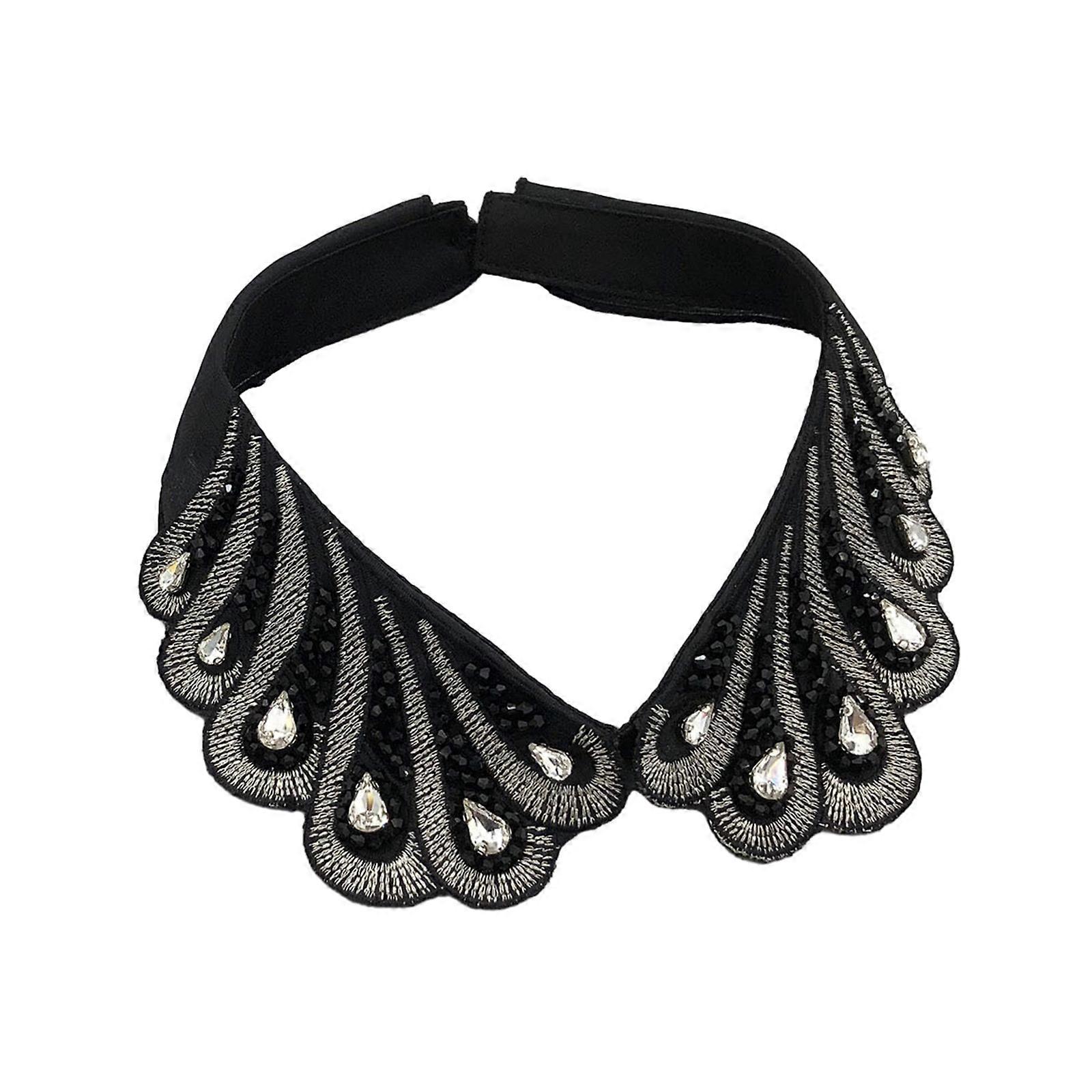 Hand Beading Rhinestones Collar Elegant Girls False Collar Detachable Lapel for Lady Women Collar Shawl Black