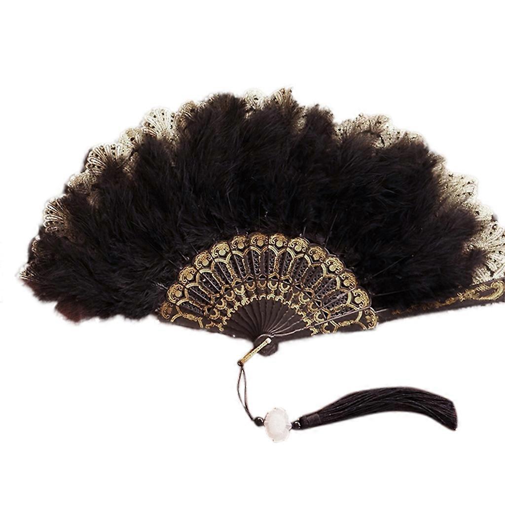 Hand Fans Wedding Lace Feather Fan for Wedding Home Decorative Handmade Fans Bride Decoration Abanicos Para Boda Favors Black