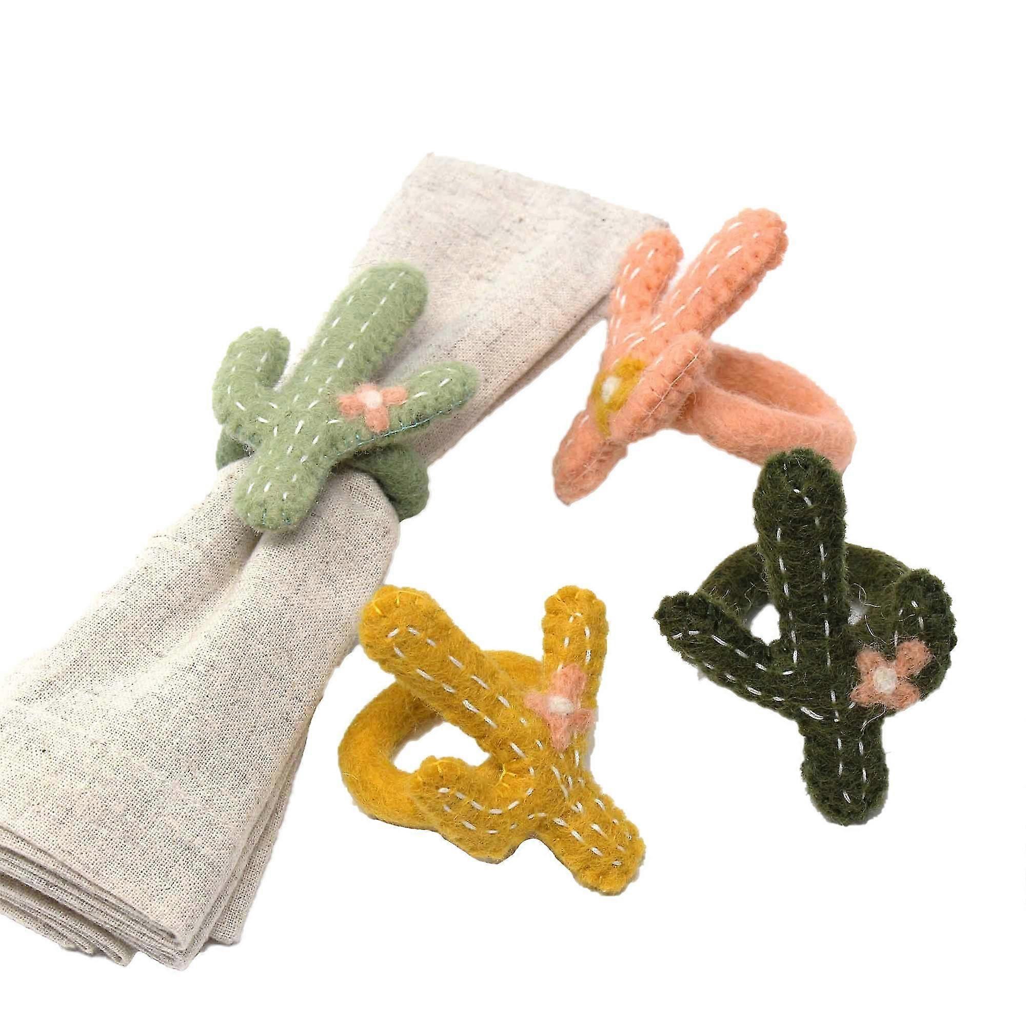 Hand-felted Cactus Napkin Rings, Set of Four Colors Global Groove (T)
