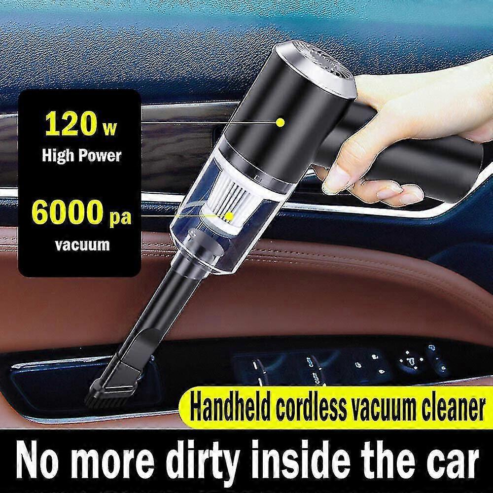 Features: new and high quality. The volume is small and exquisite, the appearance has design sense.Convenient to store, the wireless handheld vacuum cleaner is suitable for household use at the same time, can meet the vacuum work of small areaHandheld car vacuum cleaner is suitable for car and household, computer cleaningMini is small and light. The main unit is less than 400g, 147mm high and 56mm in diameter, about the same size as iphoneX.With lighting function, more convenient operation at nigh6000pa high suction power, high power pure copper motor, lasting suction power, strong powerLong battery life, longer than 25 minutes.Dust bin and filter can be washed and reused. Specifications: Material: ABSMachine power:120w (wireless)Voltage: 7.4v (wireless),Battery capacity:2000mAh (wireless)Colour: BlackSuction:6000paLife time: full power is greater than 25minProduct size: height 147mm, diameter 56mmProduct weight: less than 400g