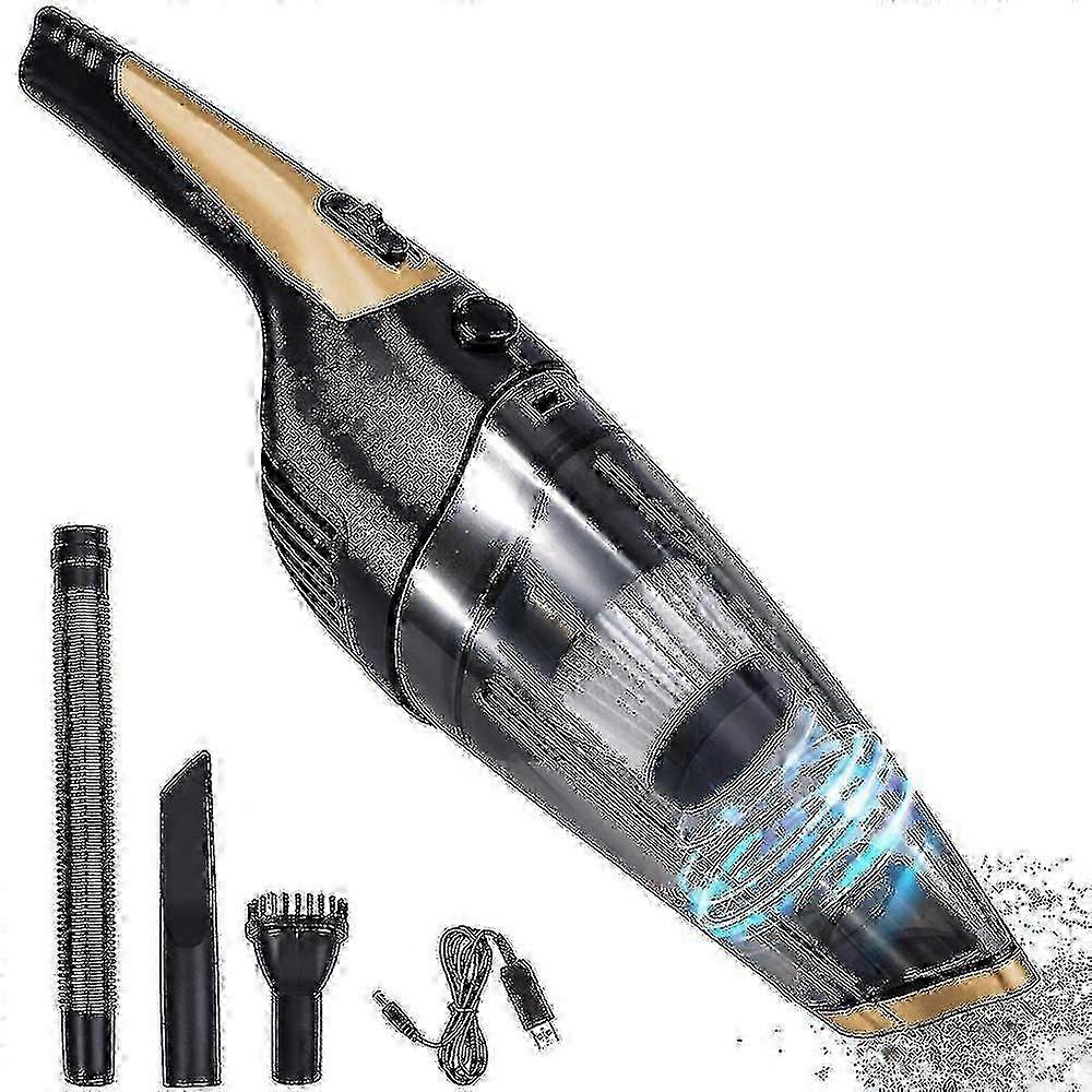 Product Material: ABSColor: red, goldBattery Capacity2000mAhFully Charging Time: 3-4 HoursWorking Time: About 22minsNoise (dB): 78dBPackage Includes:1 x Handheld Vacuum1 x Long Crevice Nozzle1 x Brush Tool1 x Extension Soft Pipe1 x Brush1 x USB charging cable1x User Manual1.Deep CleaningOur Handheld vacuum utilizes a high power motor with suction up to 4Kpa. Durable use in wet/dry conditions, it can easily clean dust, crumbs, cat litter, pet hairs. Tips: The crevice nozzle can make the suction more powerful.2.USB Quick Charge and More convenientThe cordless vacuum cleaner, built-in 2000mAh rechargeable battery, is light weight and portable for use at anywhere, only takes 3.5 hours to be fully charged, and could last 20-25 mins, Make your life easier.3.Advanced Filtration SystemThis handheld vacuum has a removable and washable stainless steel filter, and the filtration and dust removal effects are greatly increased. It can deep cleaning of your car and home. This is best choice for you.4.All-Round Cleaning, No Dead Angles: With 3 different types of attachments, The portable Cordless vacuum can help you thoroughly clean the dust of sofa, wall, stairs and other hard-to-reach areas. Provide a full range of cleaning your home environment. No more worry about dead corners5.MULTI-FUNCTIONAL ACCESSORIES The extension hose can connect with brush to clean hard-to-reach area in your home or car. The duckbill is used for cleaning the gap and air conditioner outlet. Note: Due to the light and screen setting difference, the item's color may be slightly different from the pictures. Please allow slight dimension difference due to different manual measurement. Sold by-Minnanxin