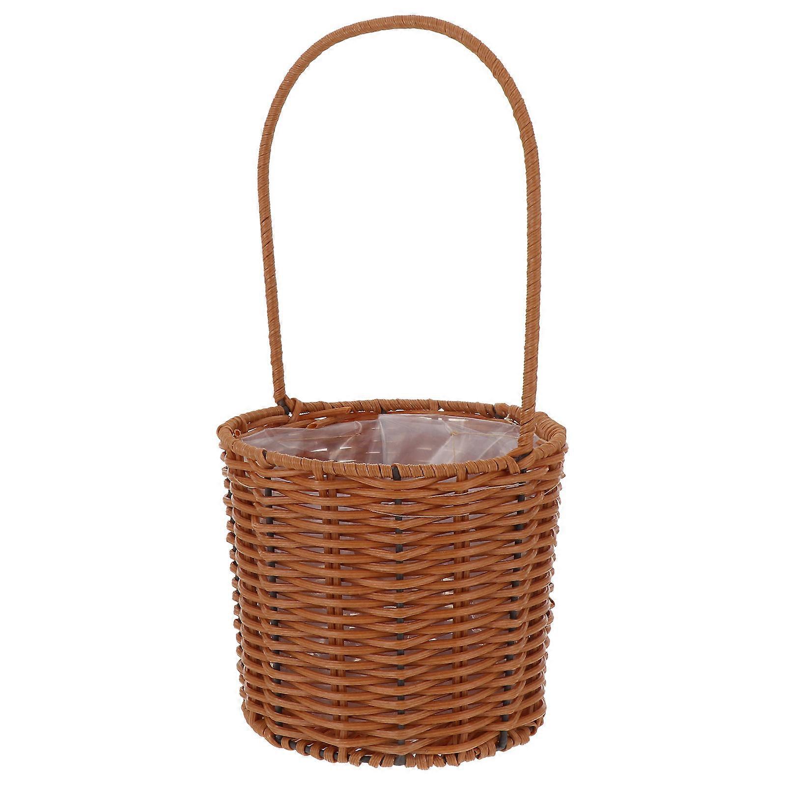 Handheld Woven Flower Basket Small Round Faux Rattan Storage Basket for Floral Arrangements Home Wedding Camping Decor Rustic Style
