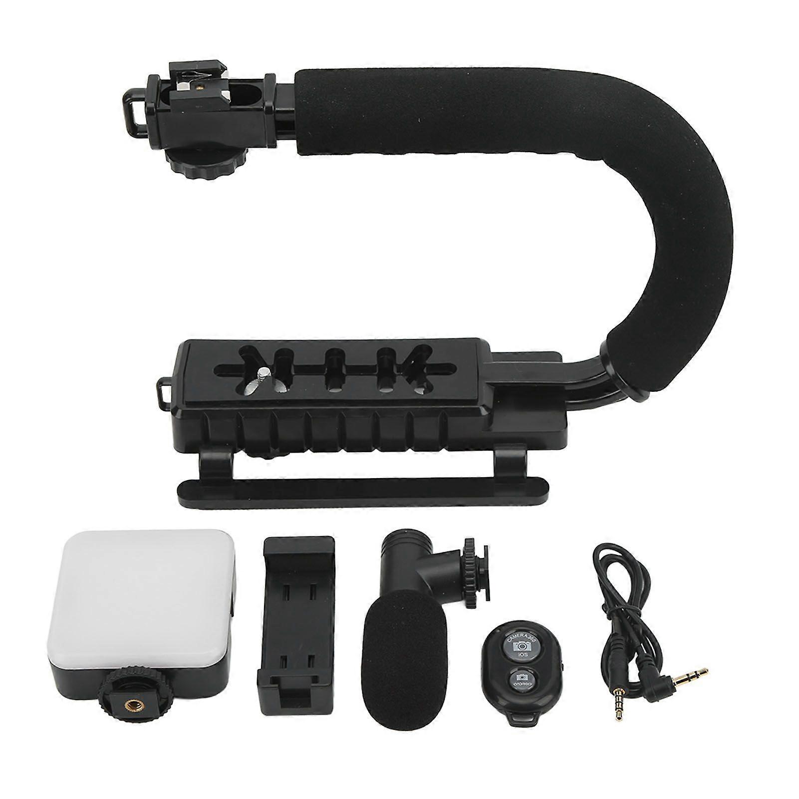 Handheld U Grip Phone Camera Stabilizer Camera Stabilizer with Microphone LED Fill Light Hot Shoe Mount for Camera Phone