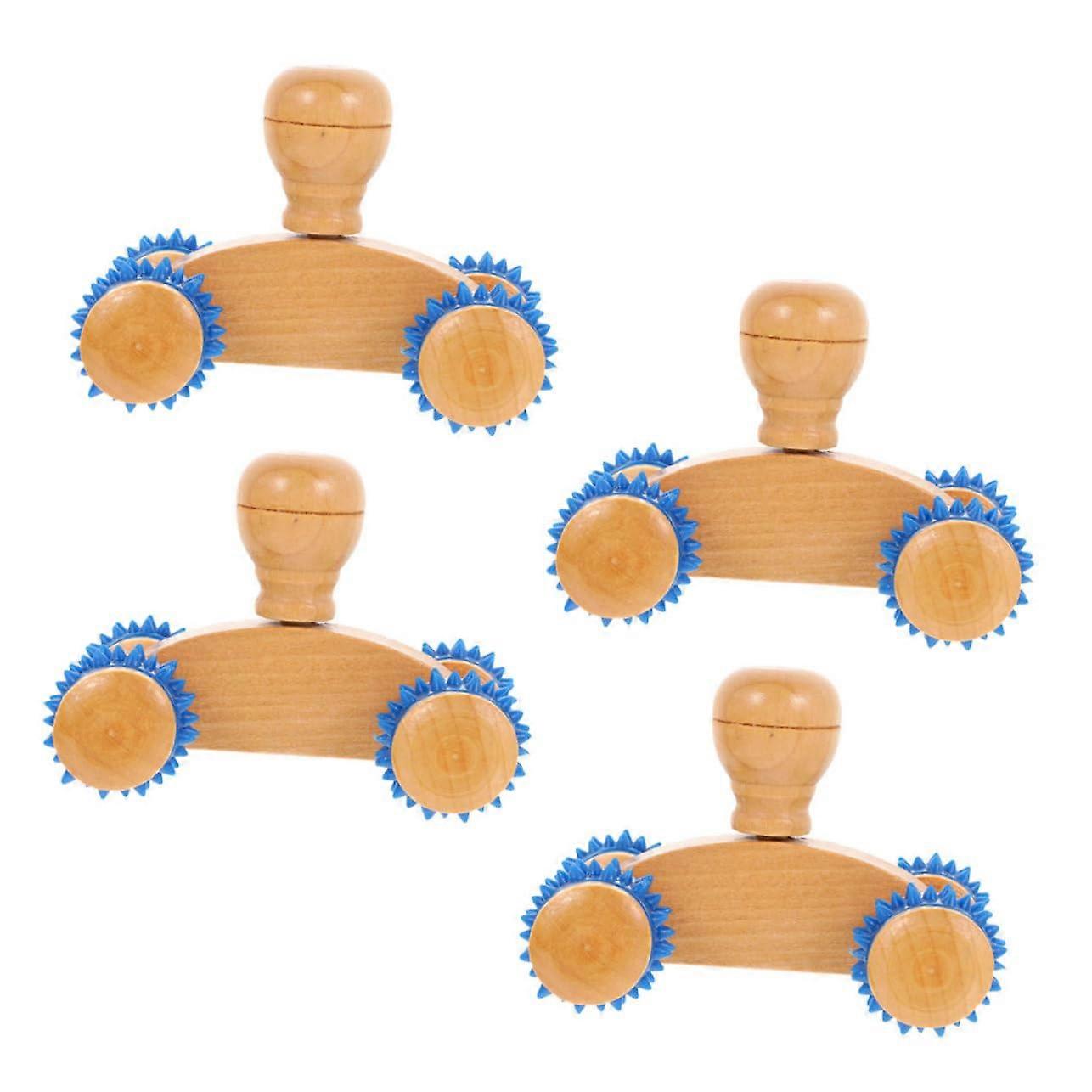 Hand Massage Rollers, Pack Of 4, Large Neck Pain Roller, Wood Body Massage Roller, Brown Wood
