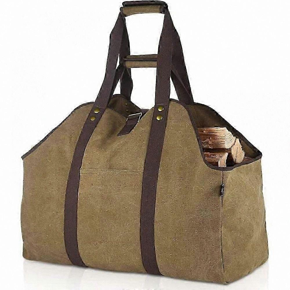 Extra Large Waxed Canvas Firewood Tote with Handles and Shoulder Strap, Durable Log Carrier Bag for Home and Outdoor Use