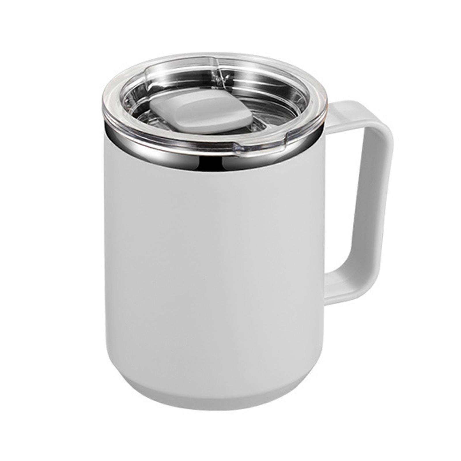 Double Wall Stainless Steel Mug with Handle and Lid Portable Insulated Cup for Outdoor Traveling Drinking Water Tea White