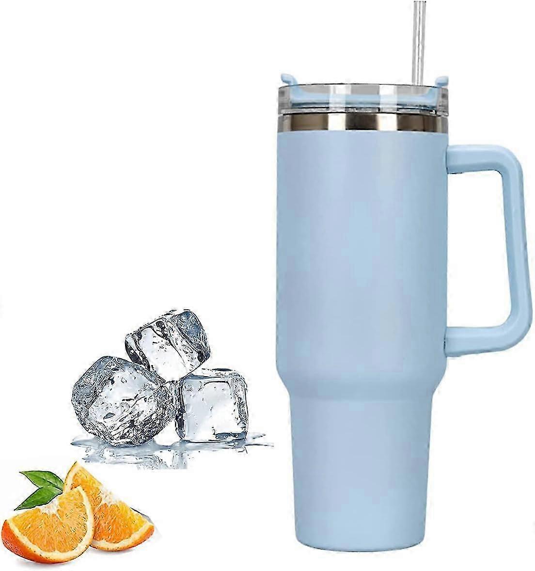 Stainless Steel Travel Mug with Handle, Insulated Coffee Cup with Lid and Straw, Hot Cold Drink Bottle – Blue