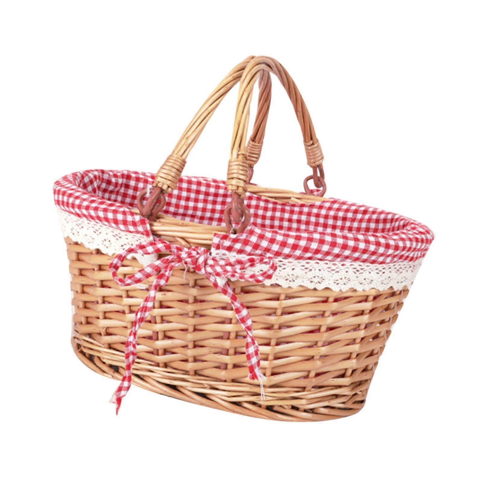 Picnic Basket with Handle Storage Basket Rattan Kitchen Organizer Hand Woven