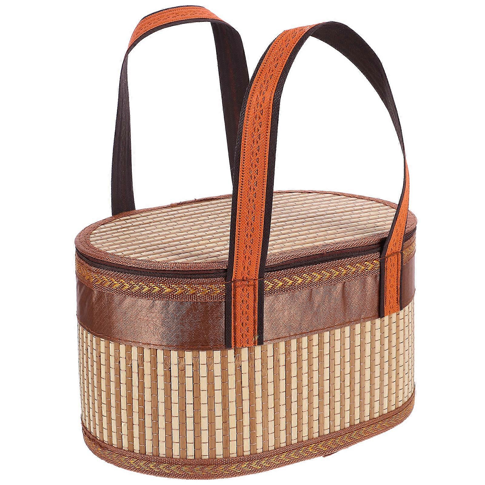 Market Basket With Handle Bamboo Woven Storage Basket For Outdoor Activities Coffee 30.00X20.00X16.00CM Outdoor Use 1Pack