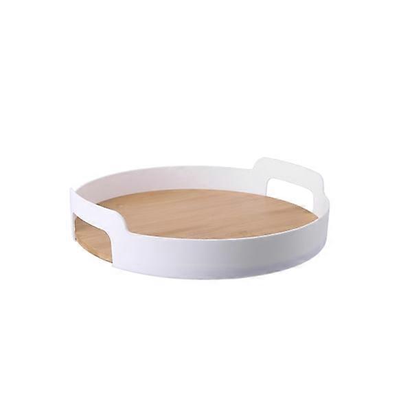 Round Decorative Wood Tray with Handles, Coffee Table Tray, Decorative Serving Trays for Living