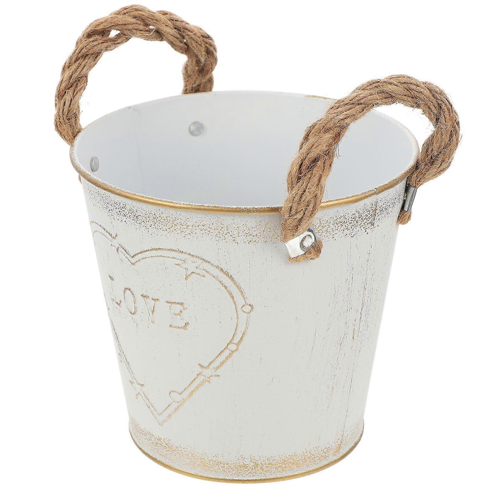 Retro Iron Bucket Vase with Handle – Elegant Plant Pot for Indoor, Balcony, Office, and Wedding Decor