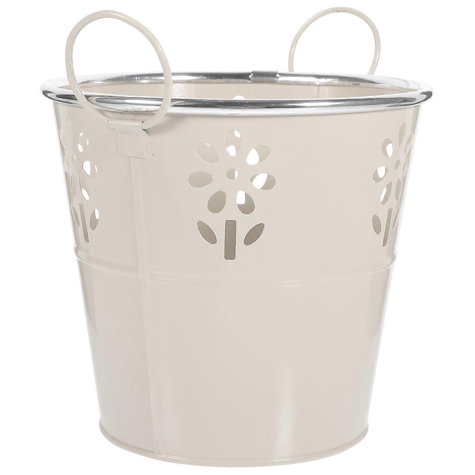 Retro Iron Hollow Flower Bucket with Handle – Durable Plant Container for DIY Floral Arrangements, Garden & Balcony Decor