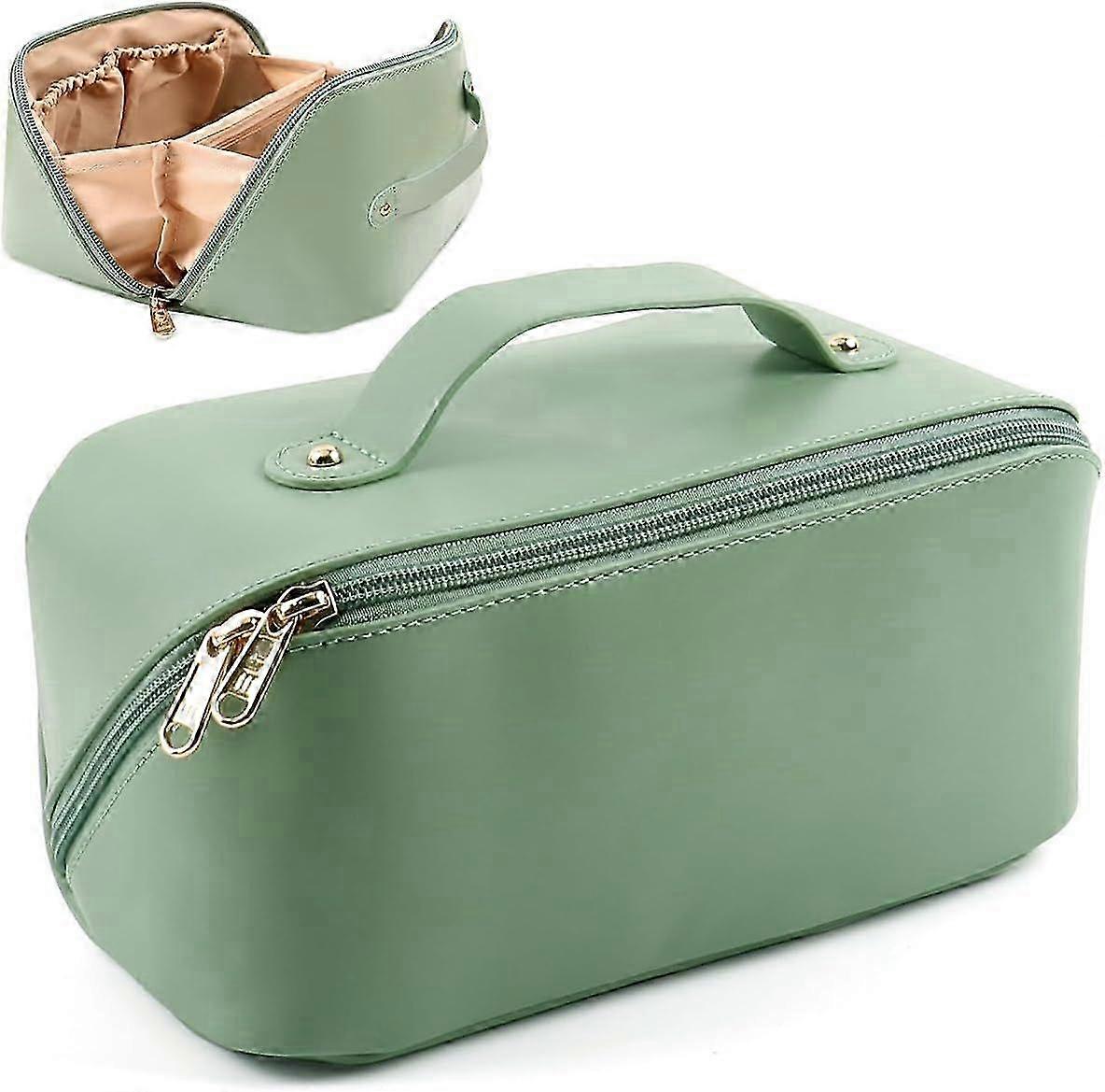 Large Capacity Travel Cosmetic Bag with Handle, Portable Zipper Toiletry Bag - Green