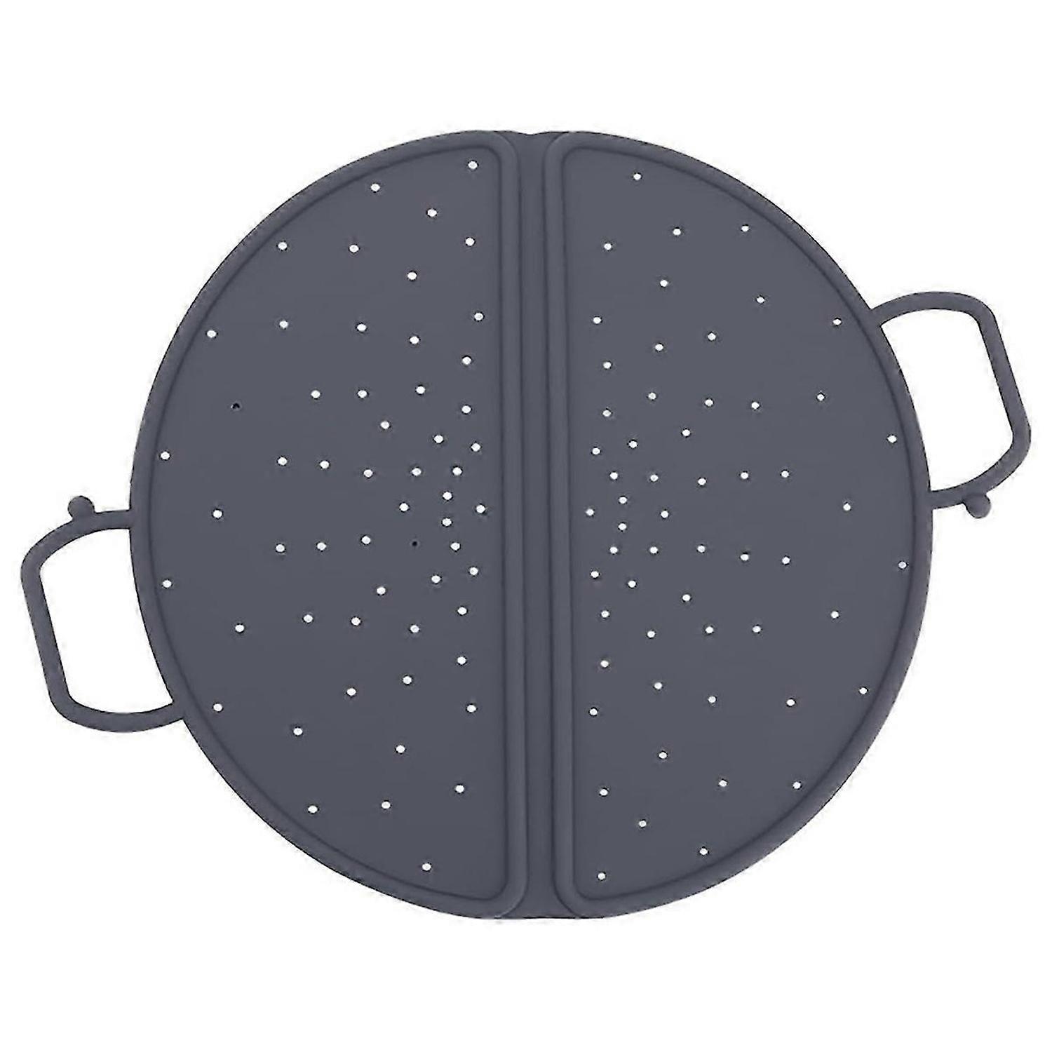 Foldable Steamer Basket with Handles,12 Inches, Gray Silicone, Double-Sided Design for Wok and Pan