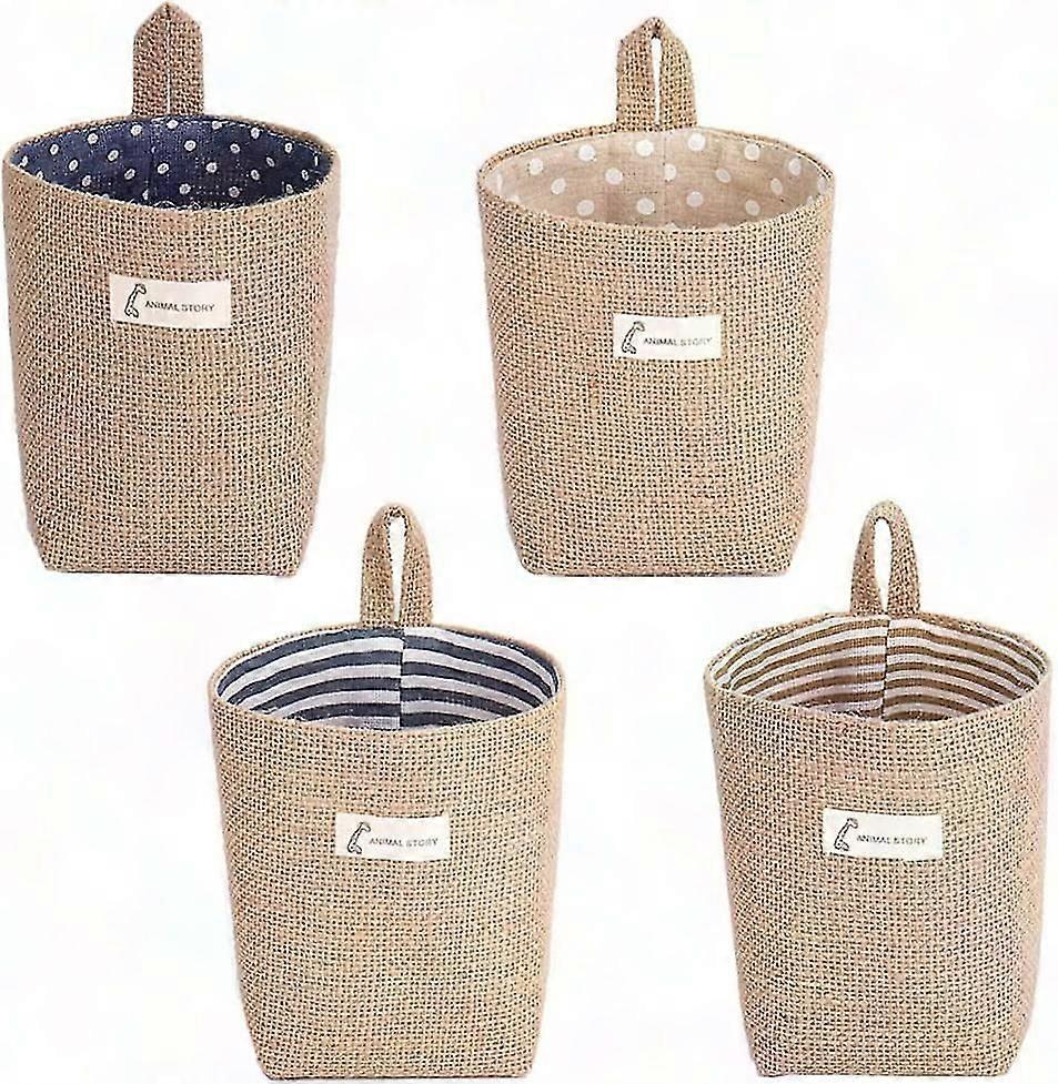 4-Piece Foldable Storage Baskets with Handles, Hanging Organizer Bag, Cotton Linen Storage Bins for Cosmetics, Keys, Toys - 4 Colors