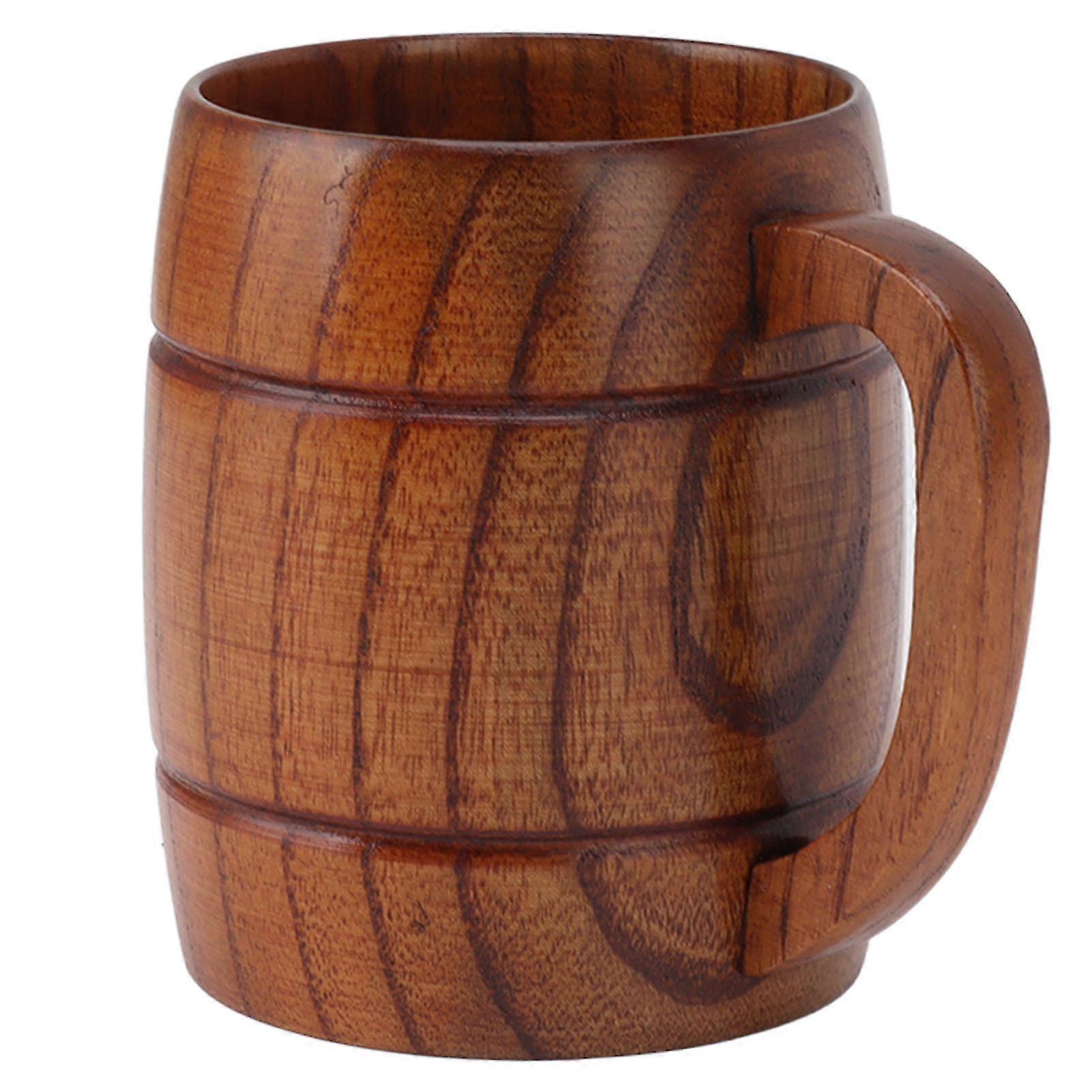 Wooden Beer Mug with Handle 300ml Anti-Scald Carved Drinkware