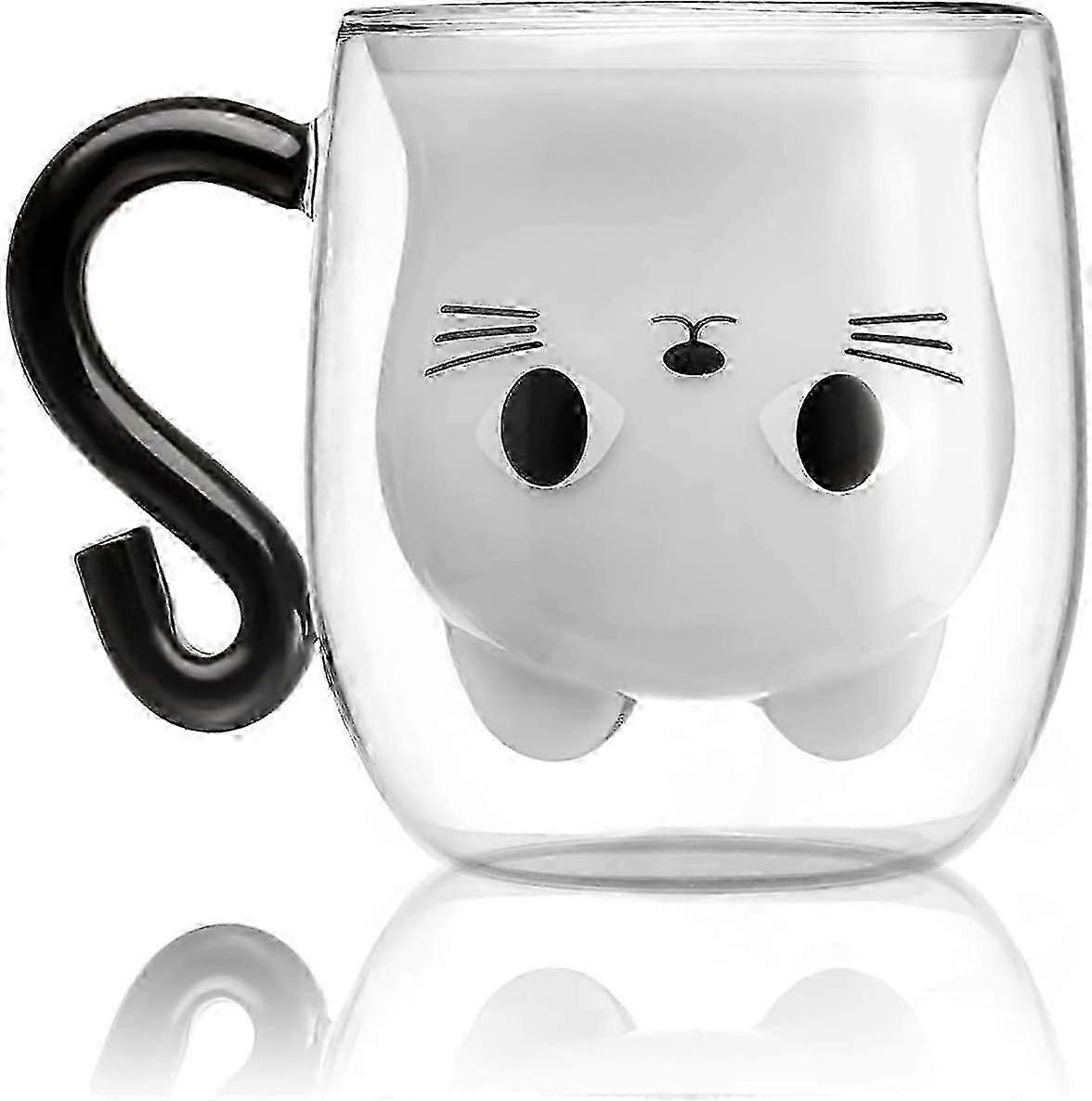 Cat Mug with Handle, Cute Double Wall Glass Coffee Tea Cup, Gift for Birthday, Christmas, Valentines, Mothers Day