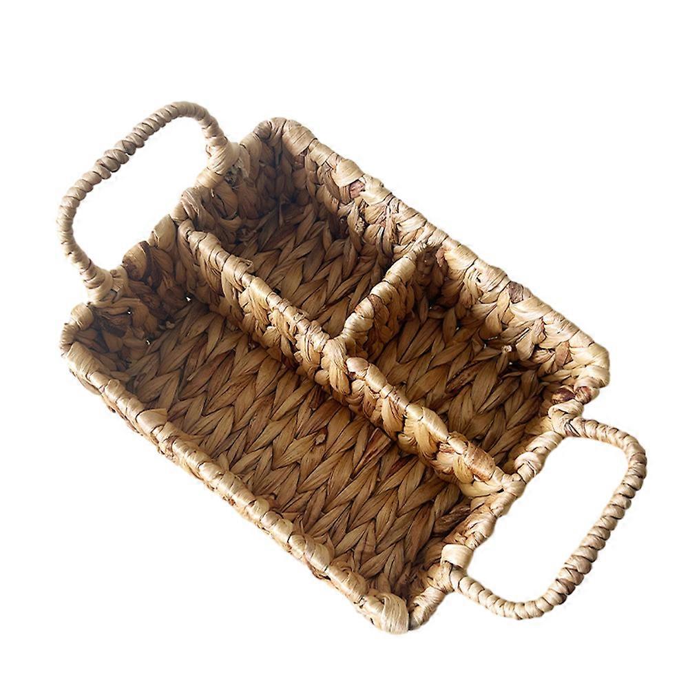 Woven Basket Organizer with Handle Divided Storage for Fruits, Snacks & Sundries Natural Design for Home, Kitchen & Desk Decor Space Saving &